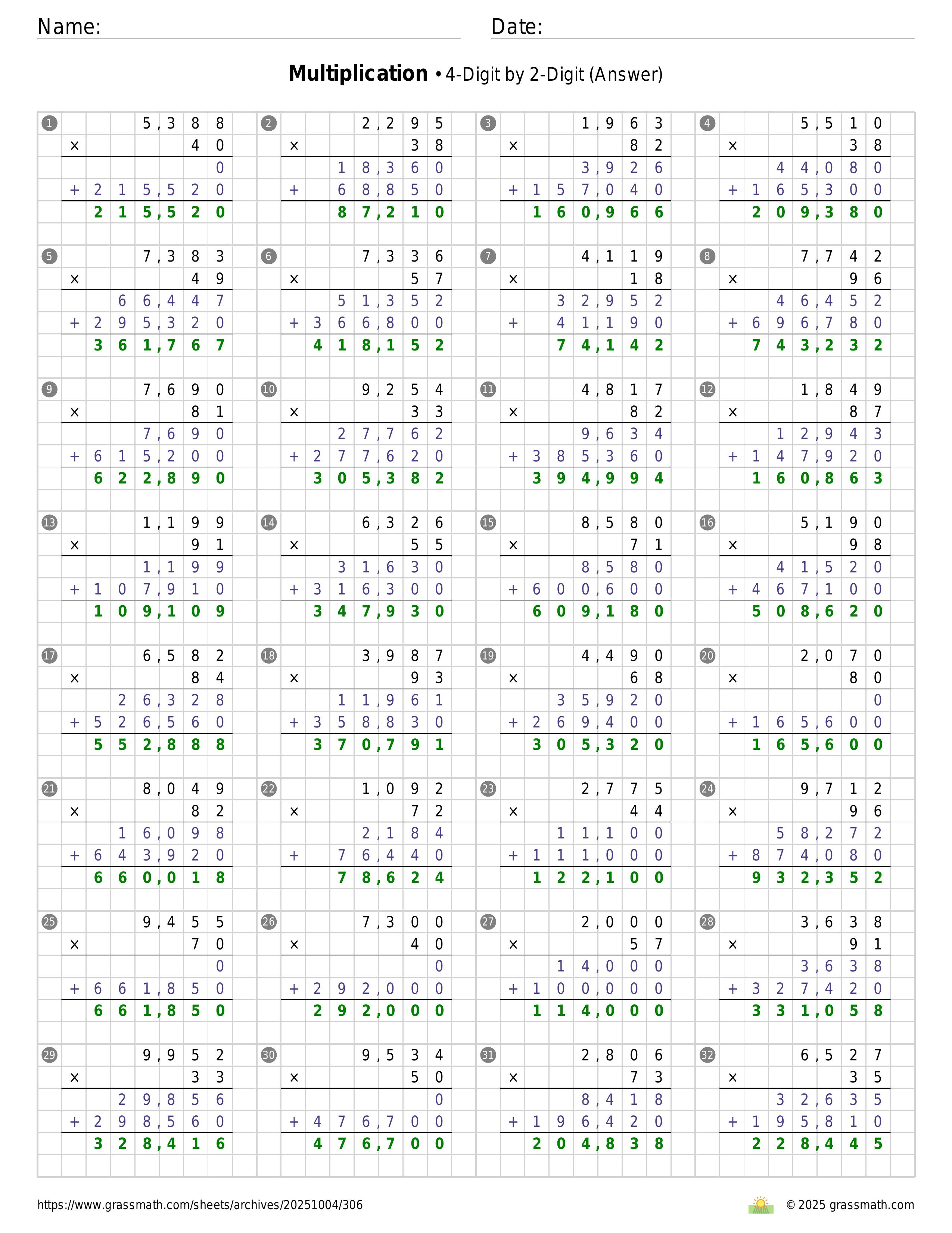 Multiplication 4-Digit by 2-Digit
