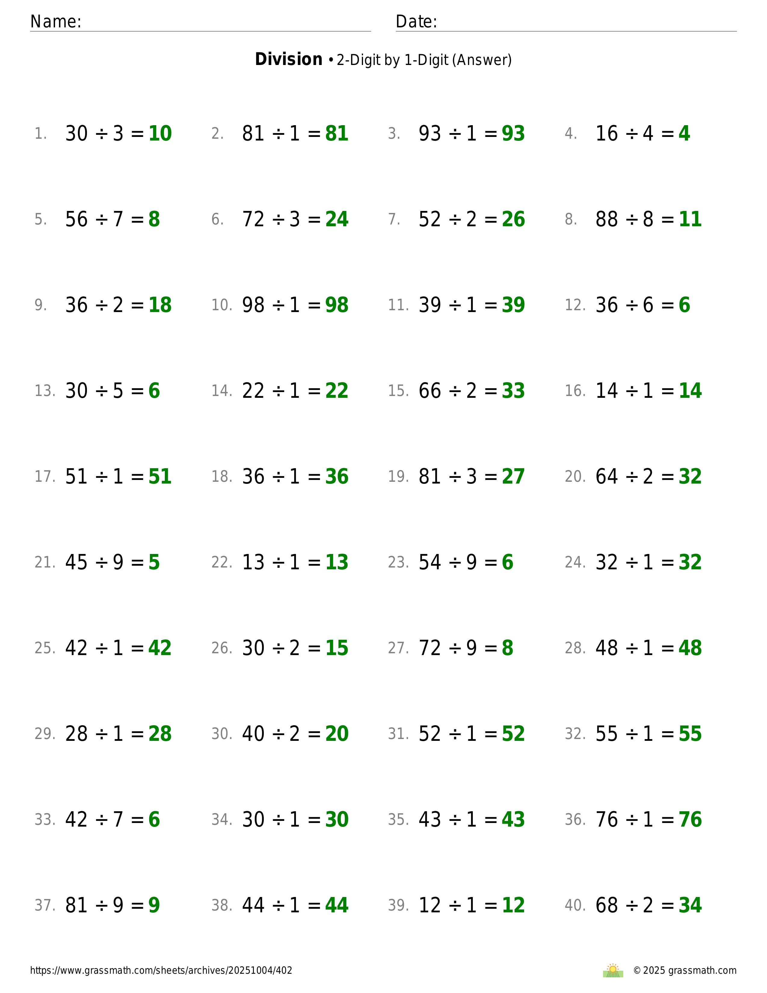 Division 2-Digit by 1-Digit