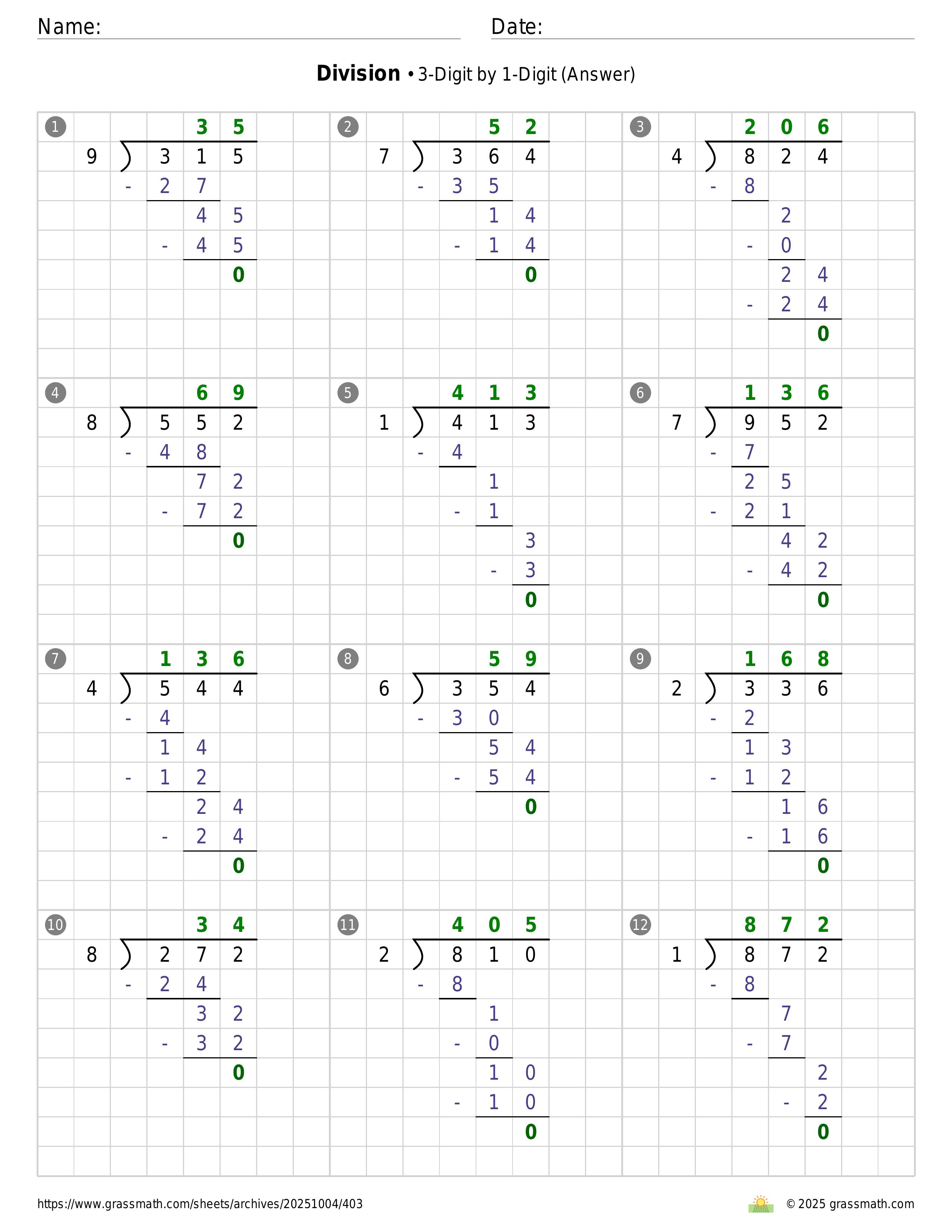 Division 3-Digit by 1-Digit