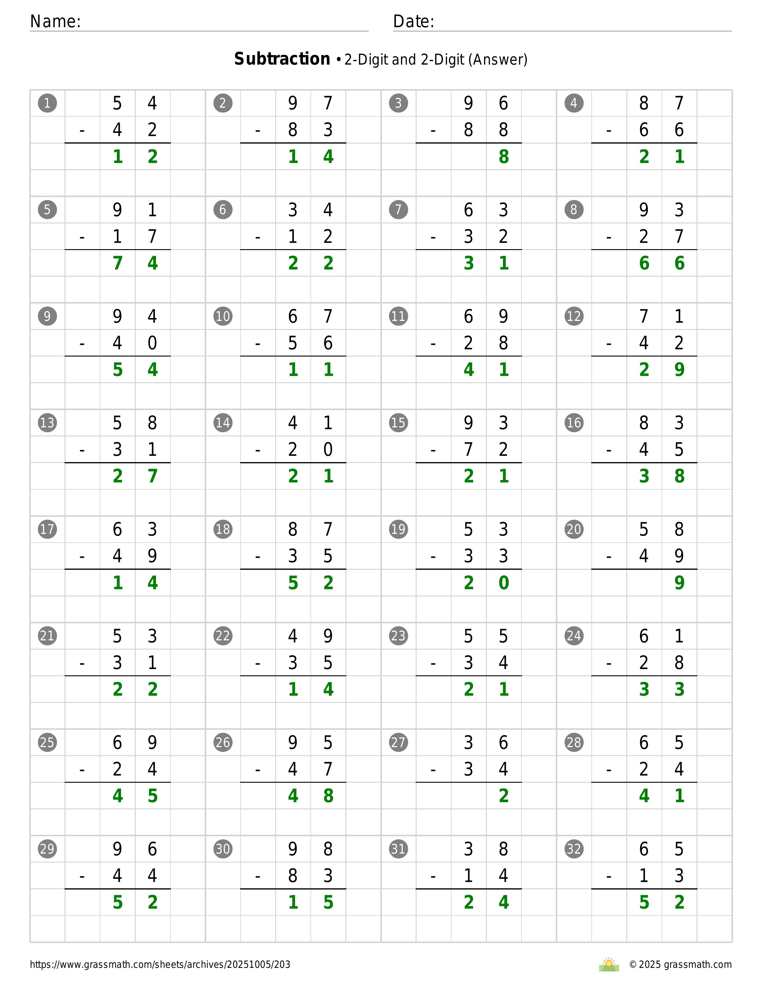 Subtraction 2-Digit and 2-Digit