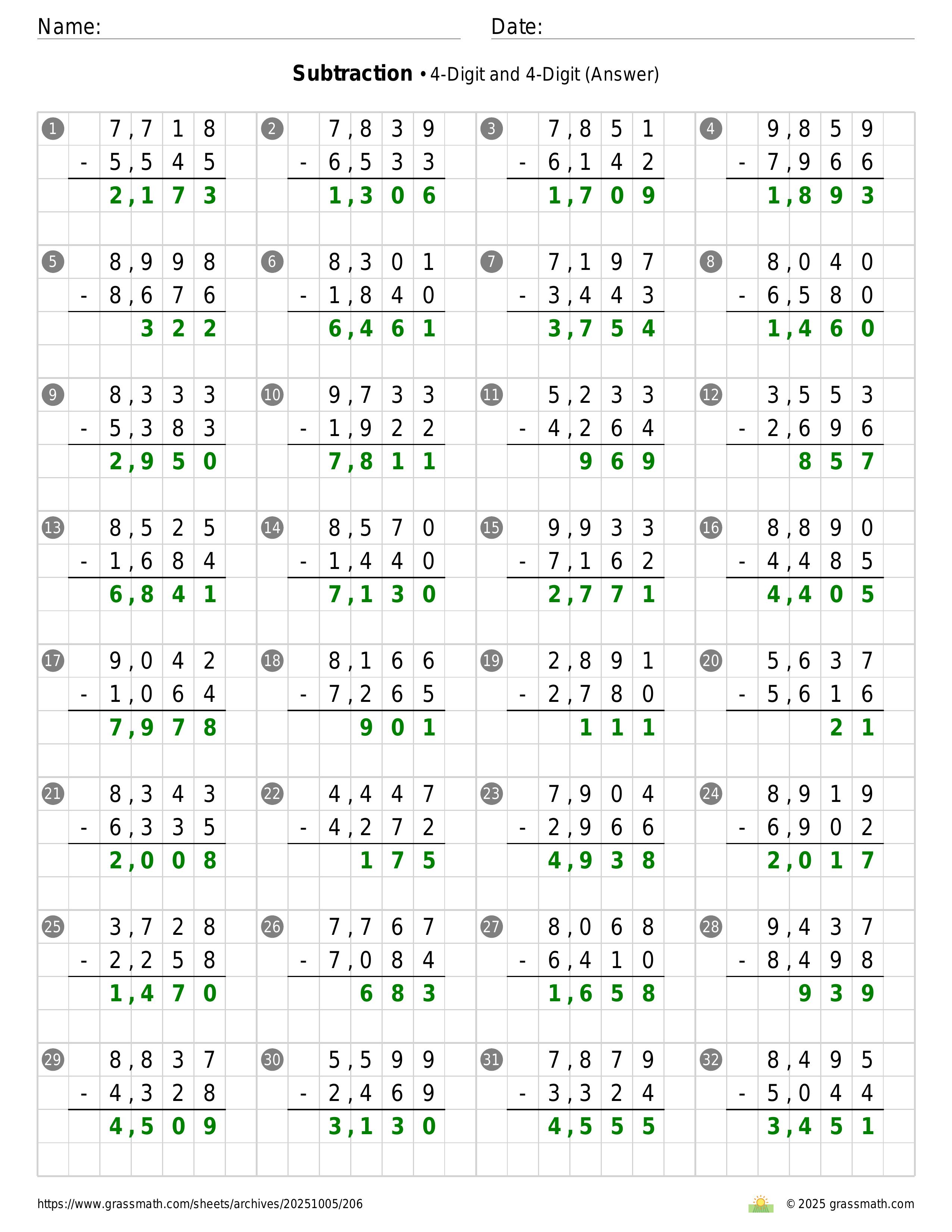 Subtraction 4-Digit and 4-Digit
