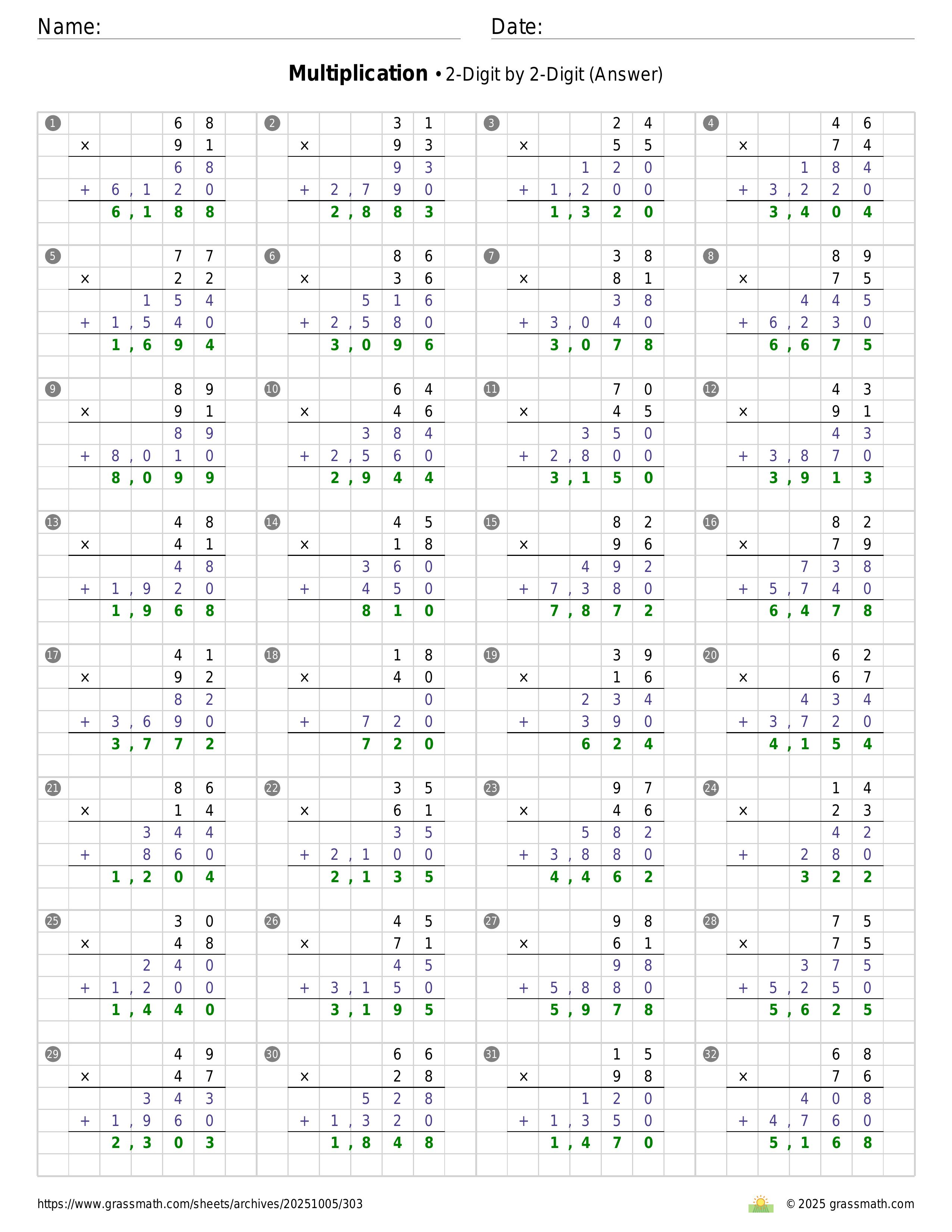 Multiplication 2-Digit by 2-Digit