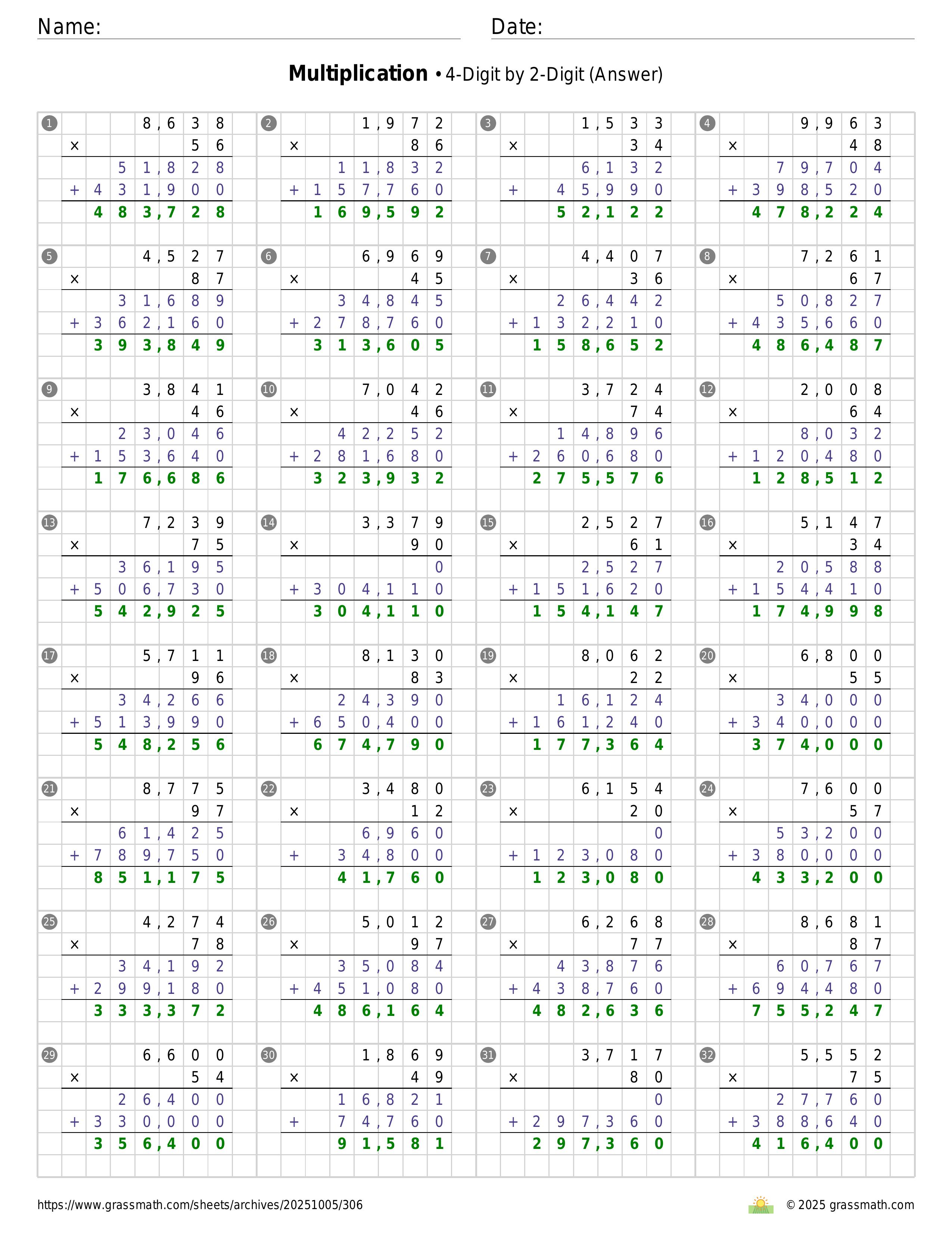 Multiplication 4-Digit by 2-Digit