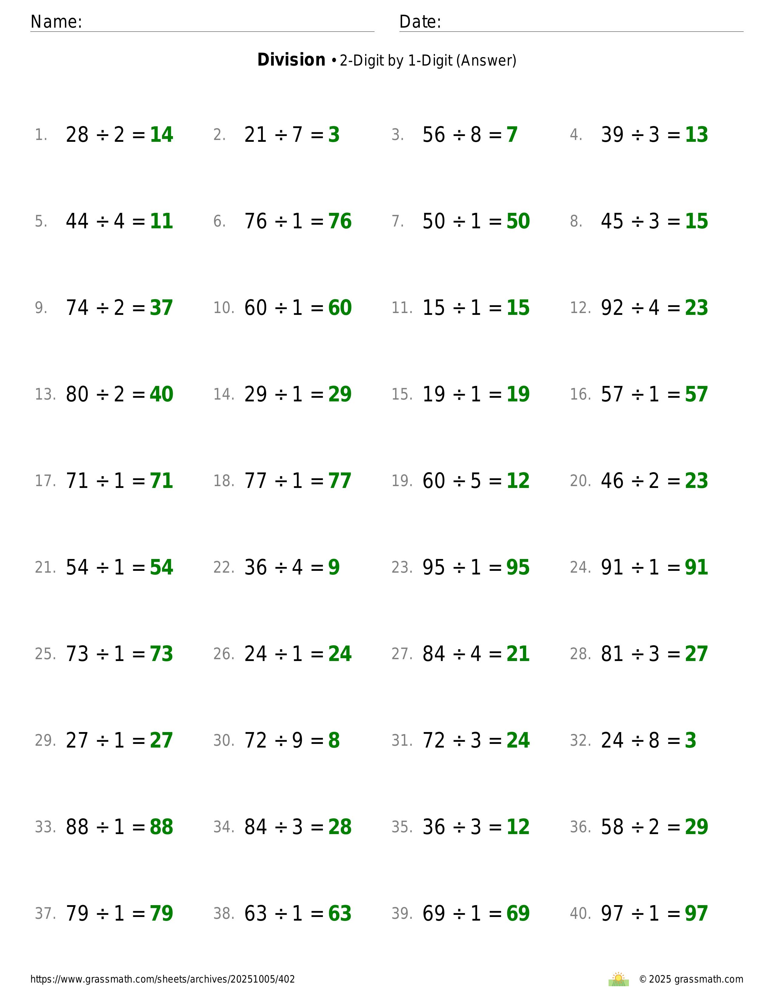 Division 2-Digit by 1-Digit