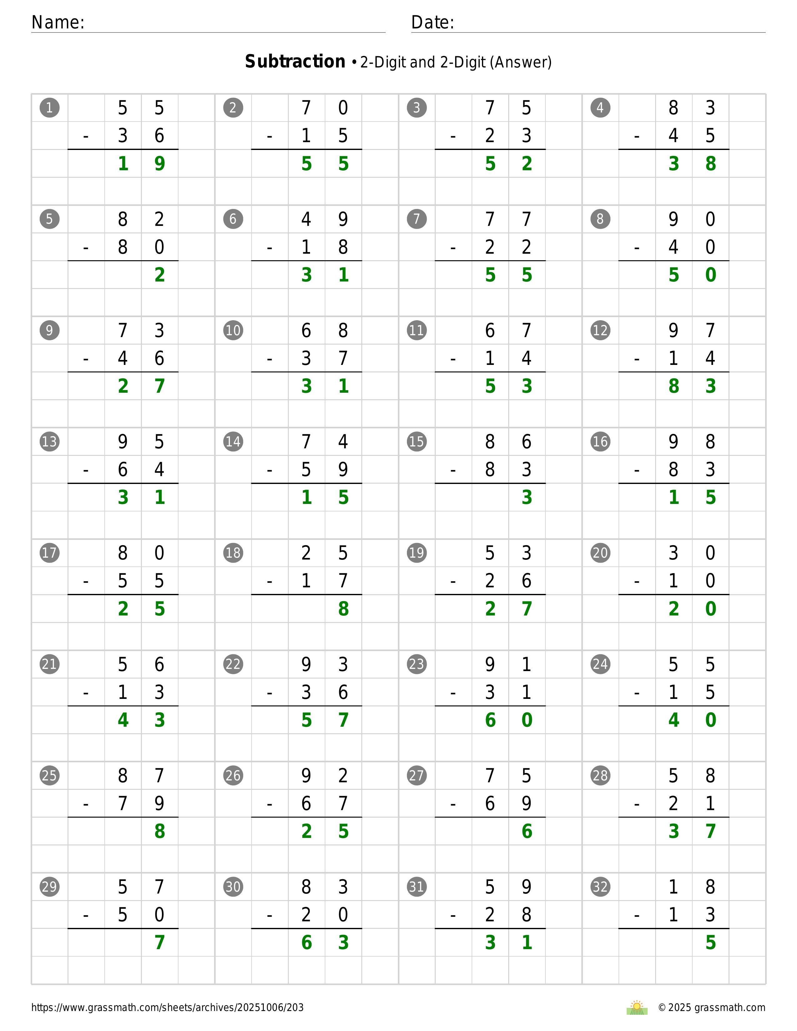 Subtraction 2-Digit and 2-Digit