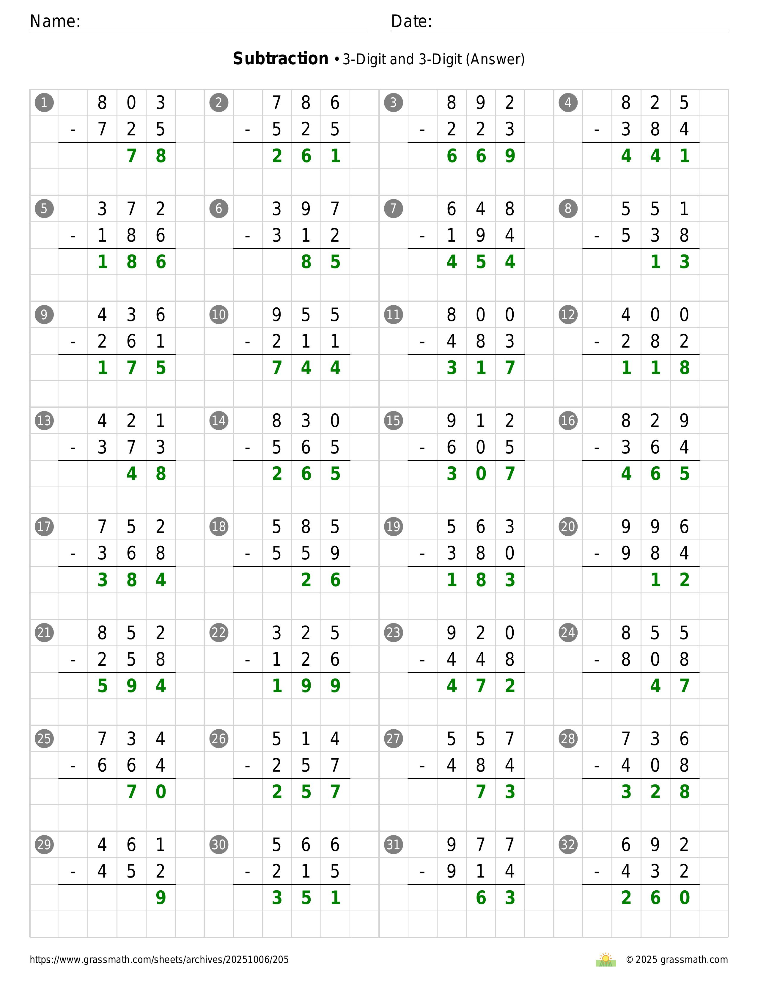 Subtraction 3-Digit and 3-Digit