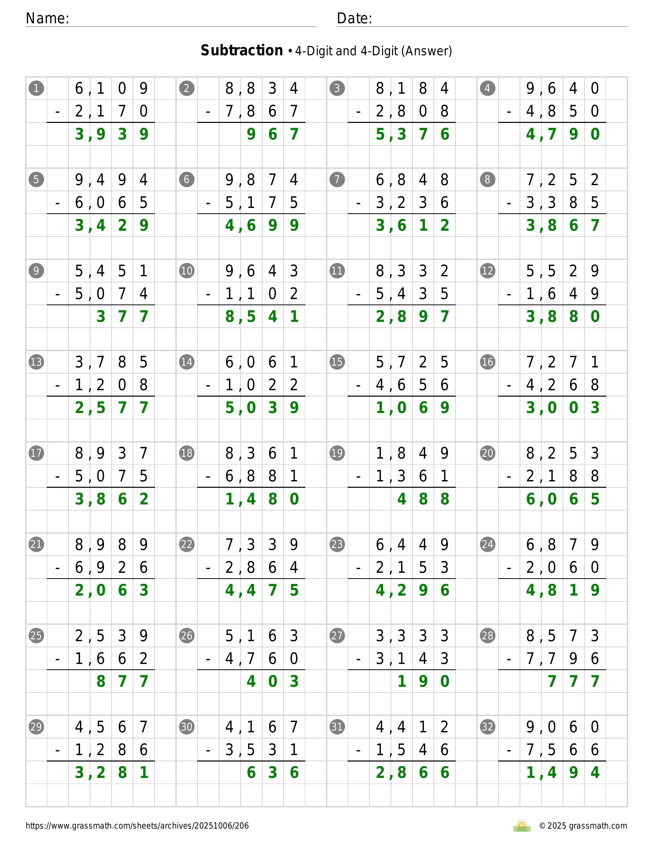 Subtraction 4-Digit and 4-Digit