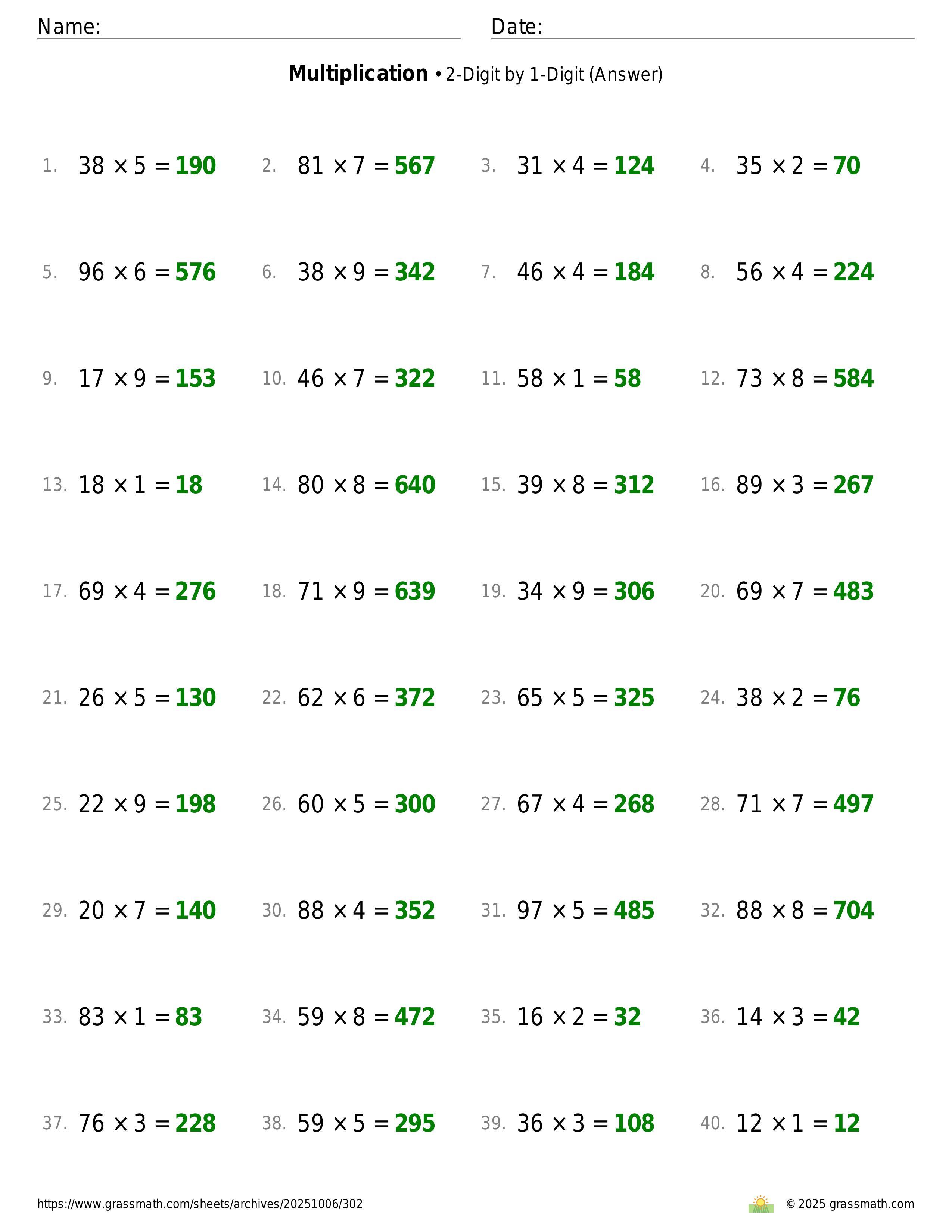 Multiplication 2-Digit by 1-Digit