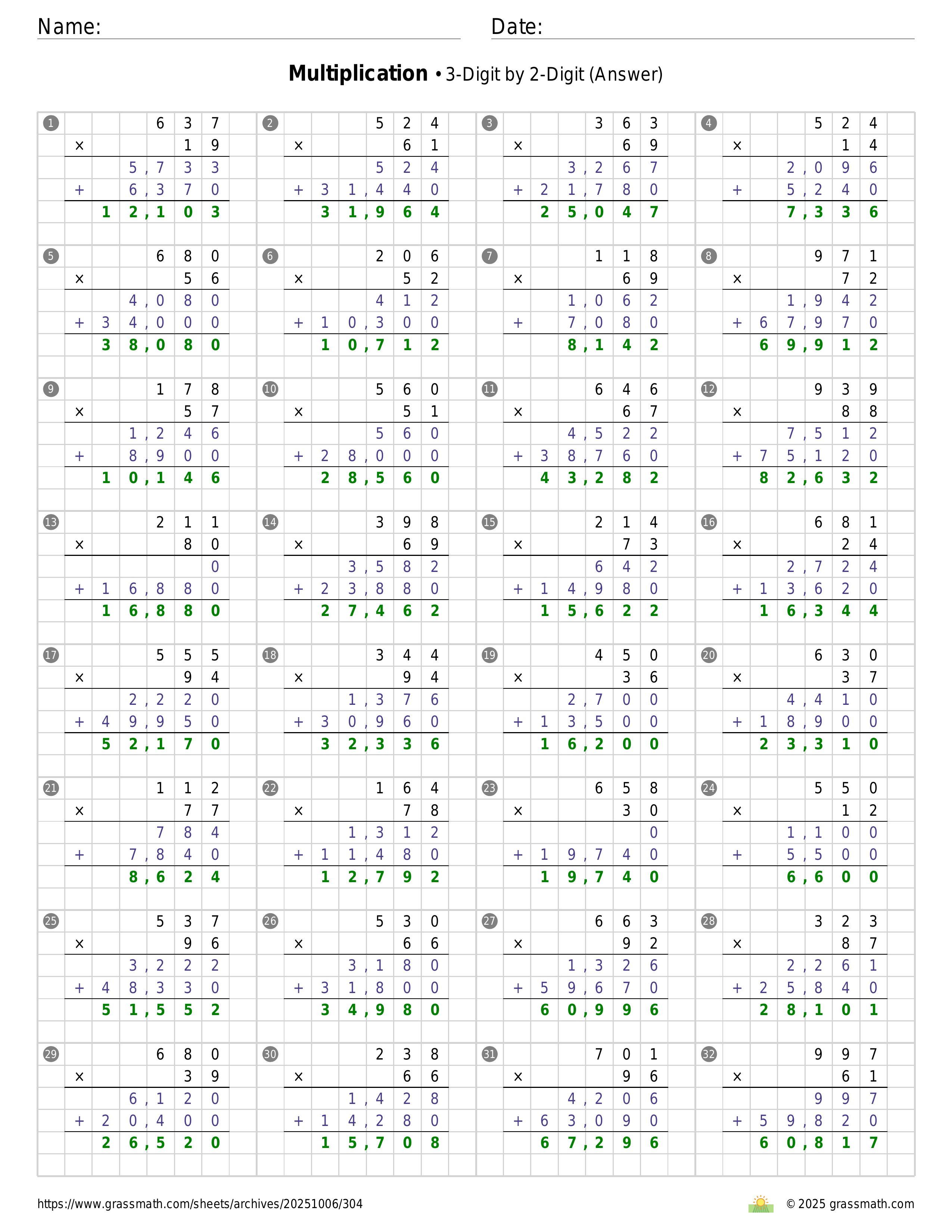 Multiplication 3-Digit by 2-Digit