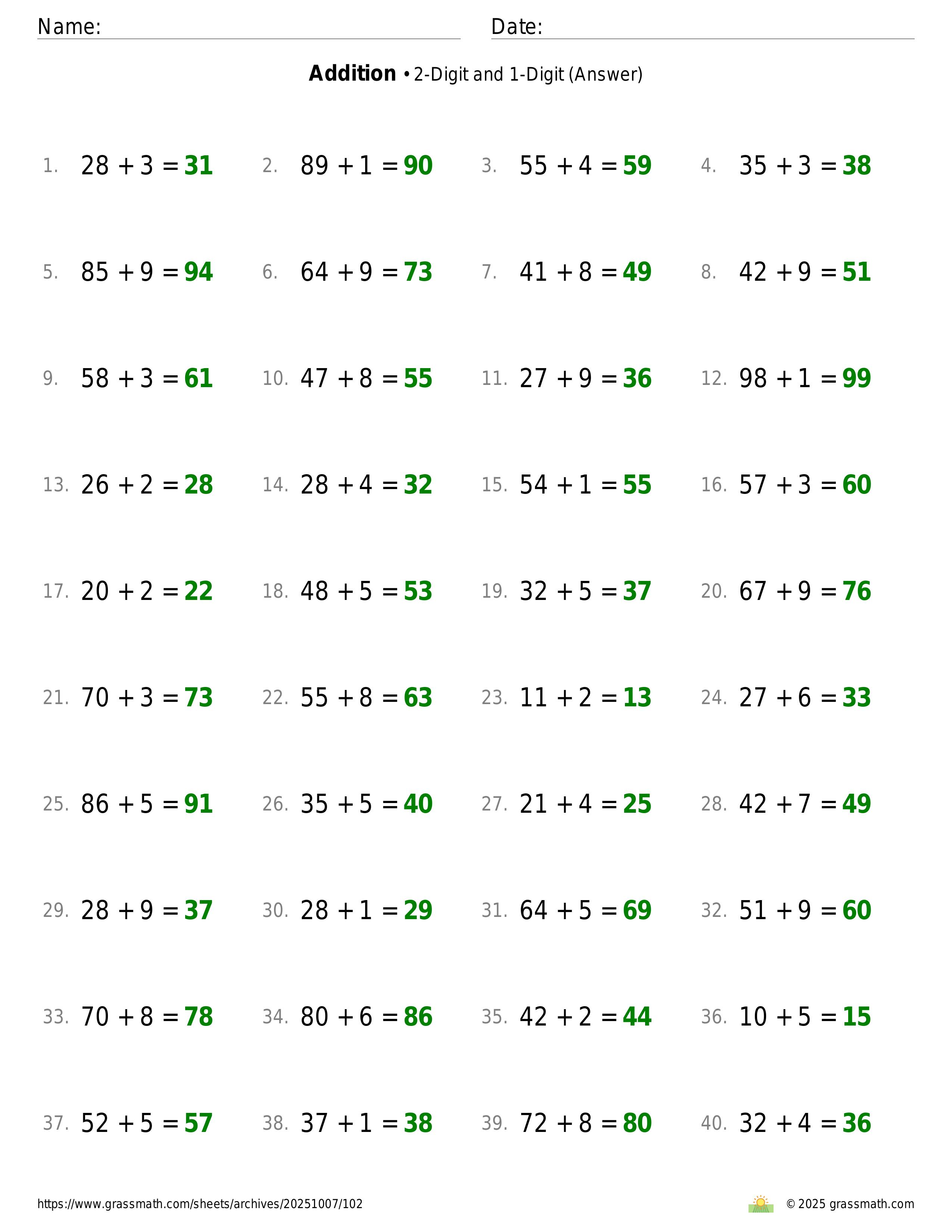 Addition 2-Digit and 1-Digit
