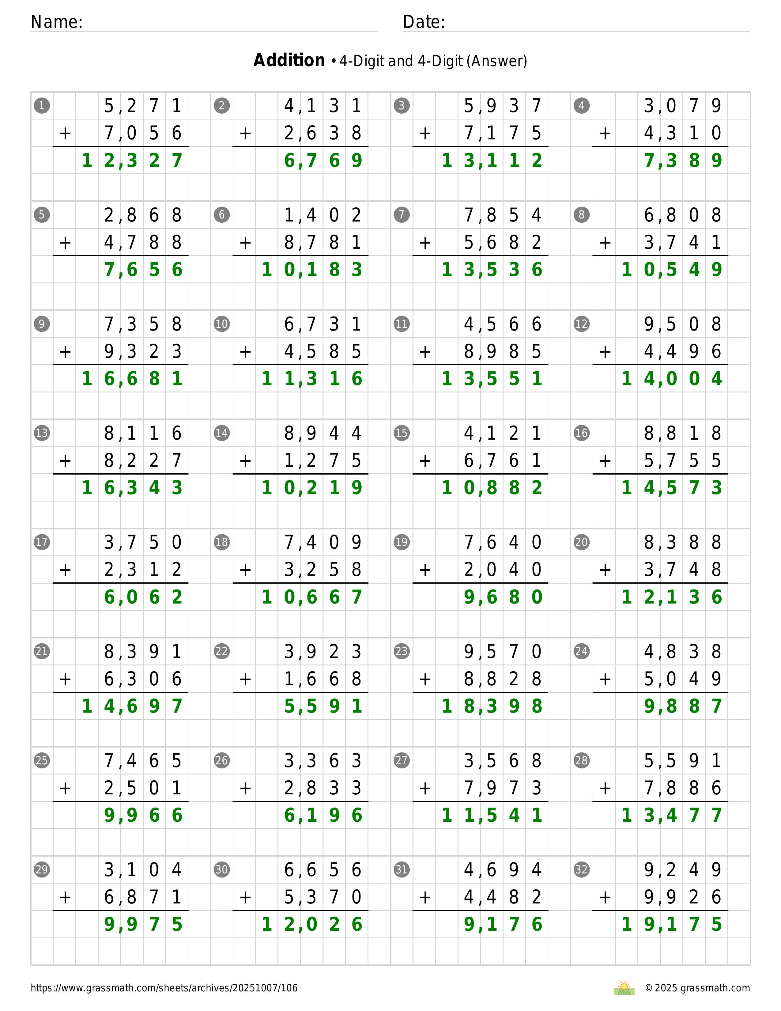 Addition 4-Digit and 4-Digit