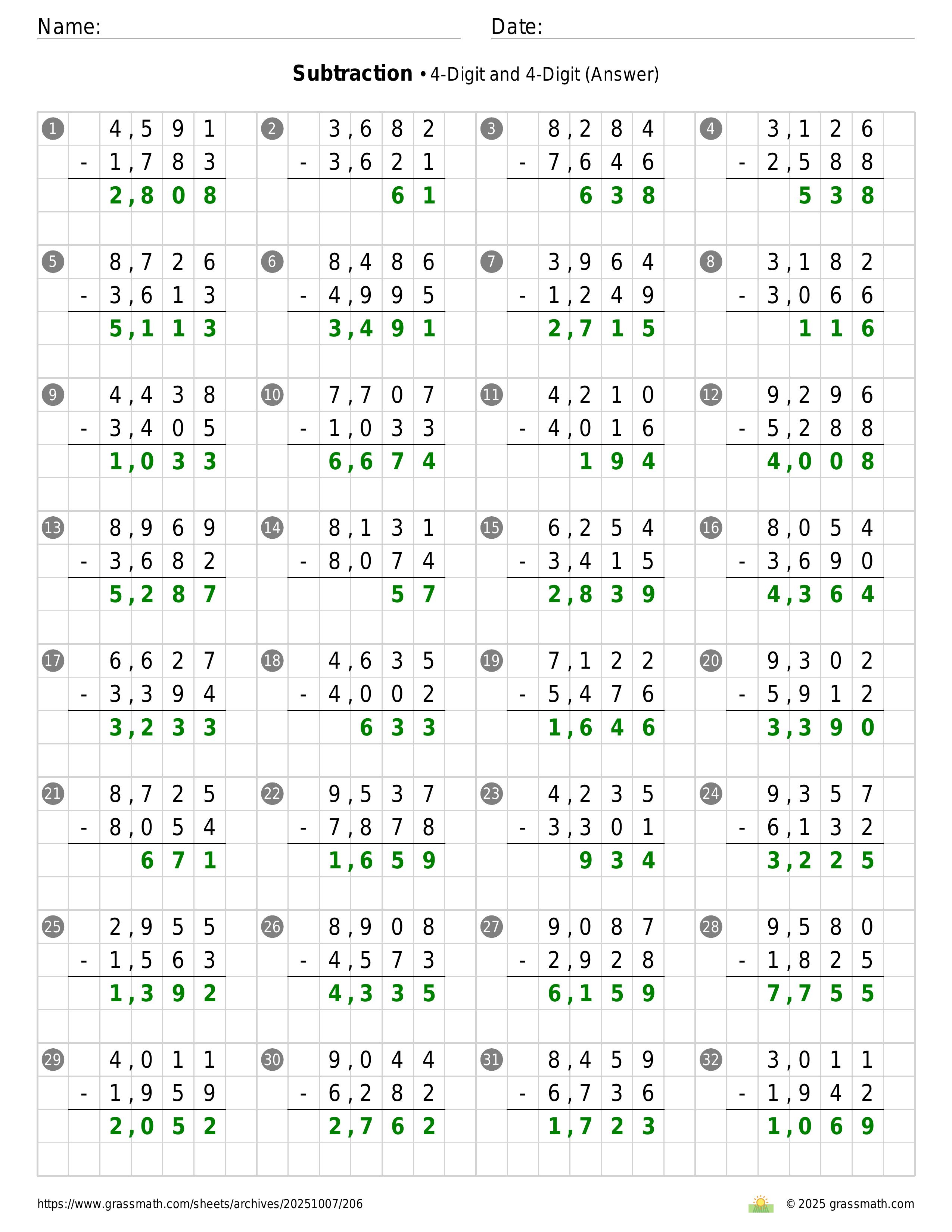 Subtraction 4-Digit and 4-Digit