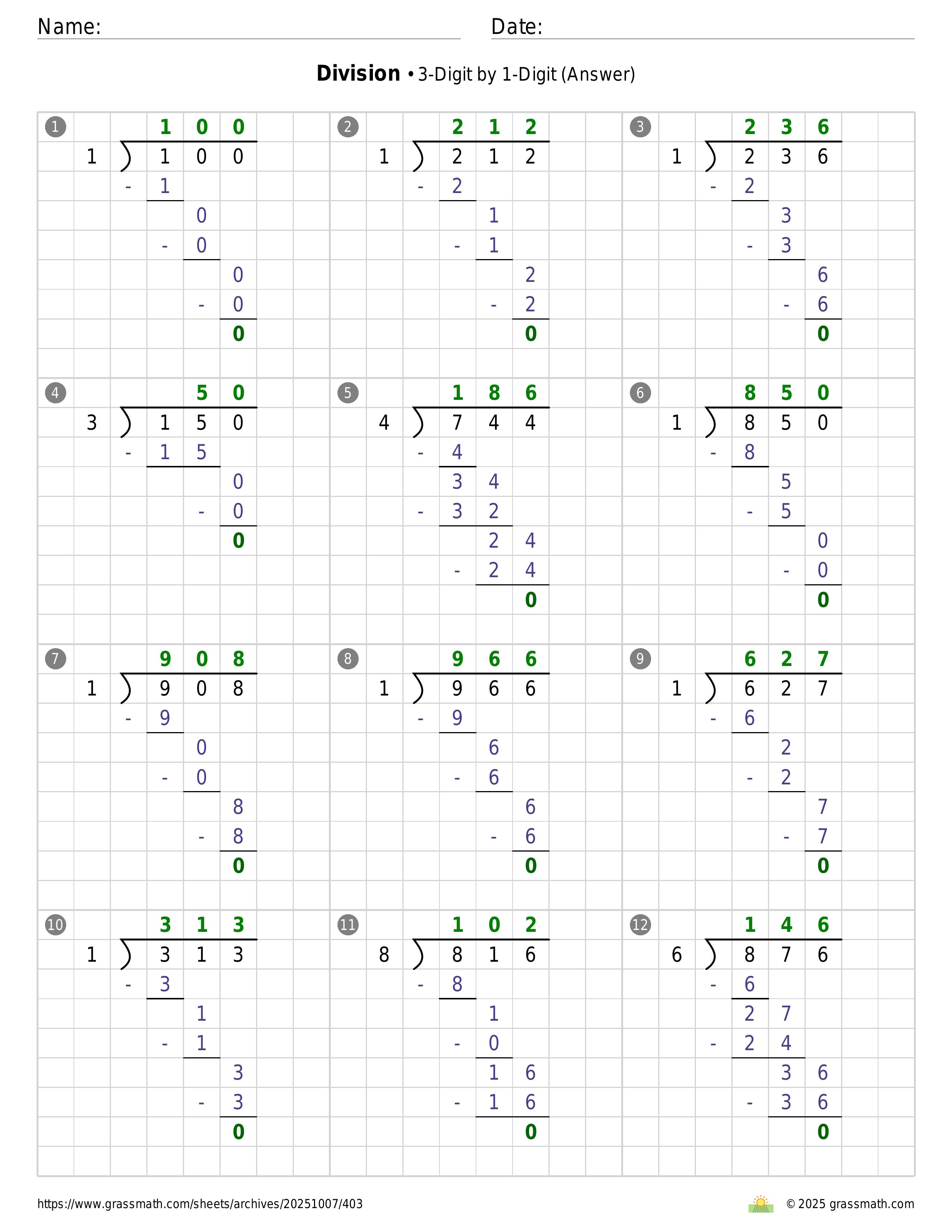 Division 3-Digit by 1-Digit