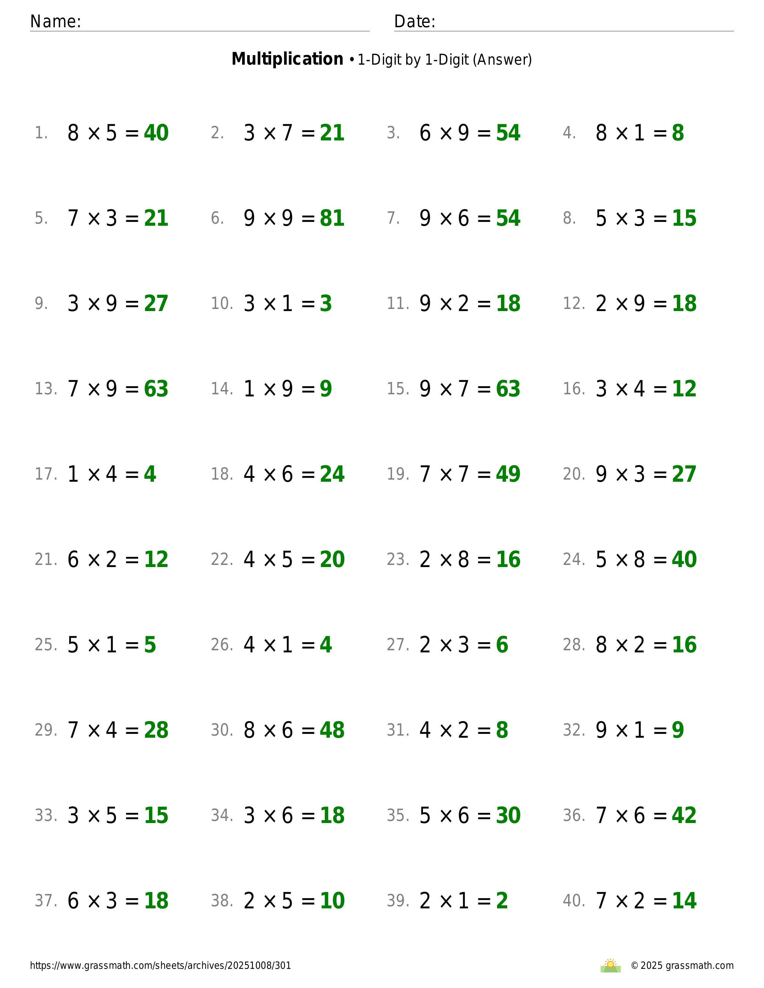 Multiplication 1-Digit by 1-Digit