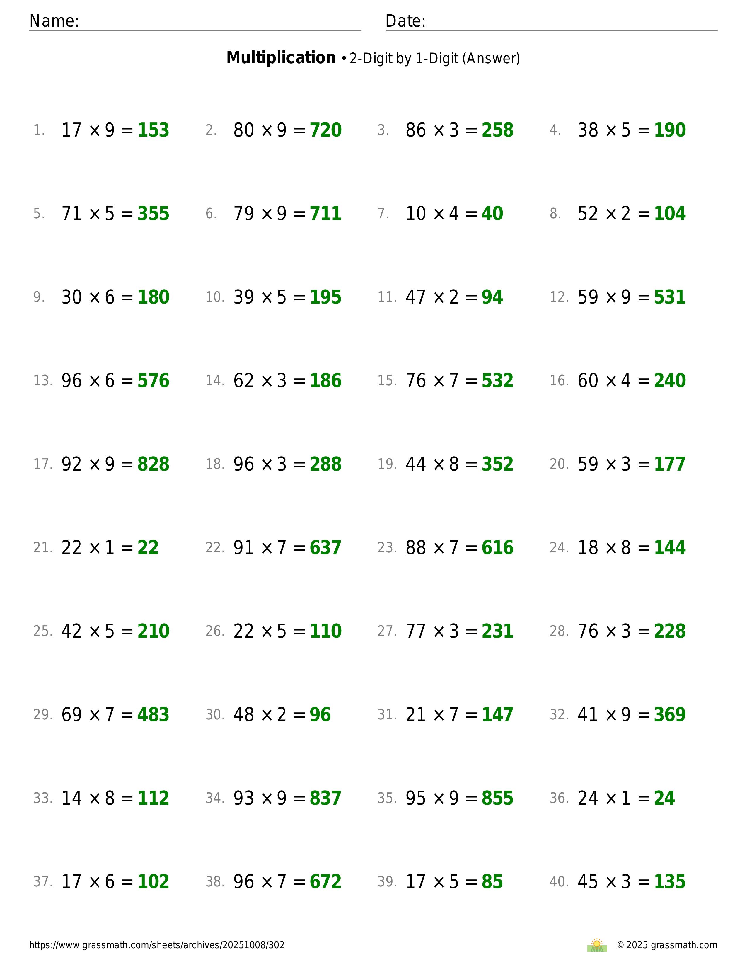 Multiplication 2-Digit by 1-Digit