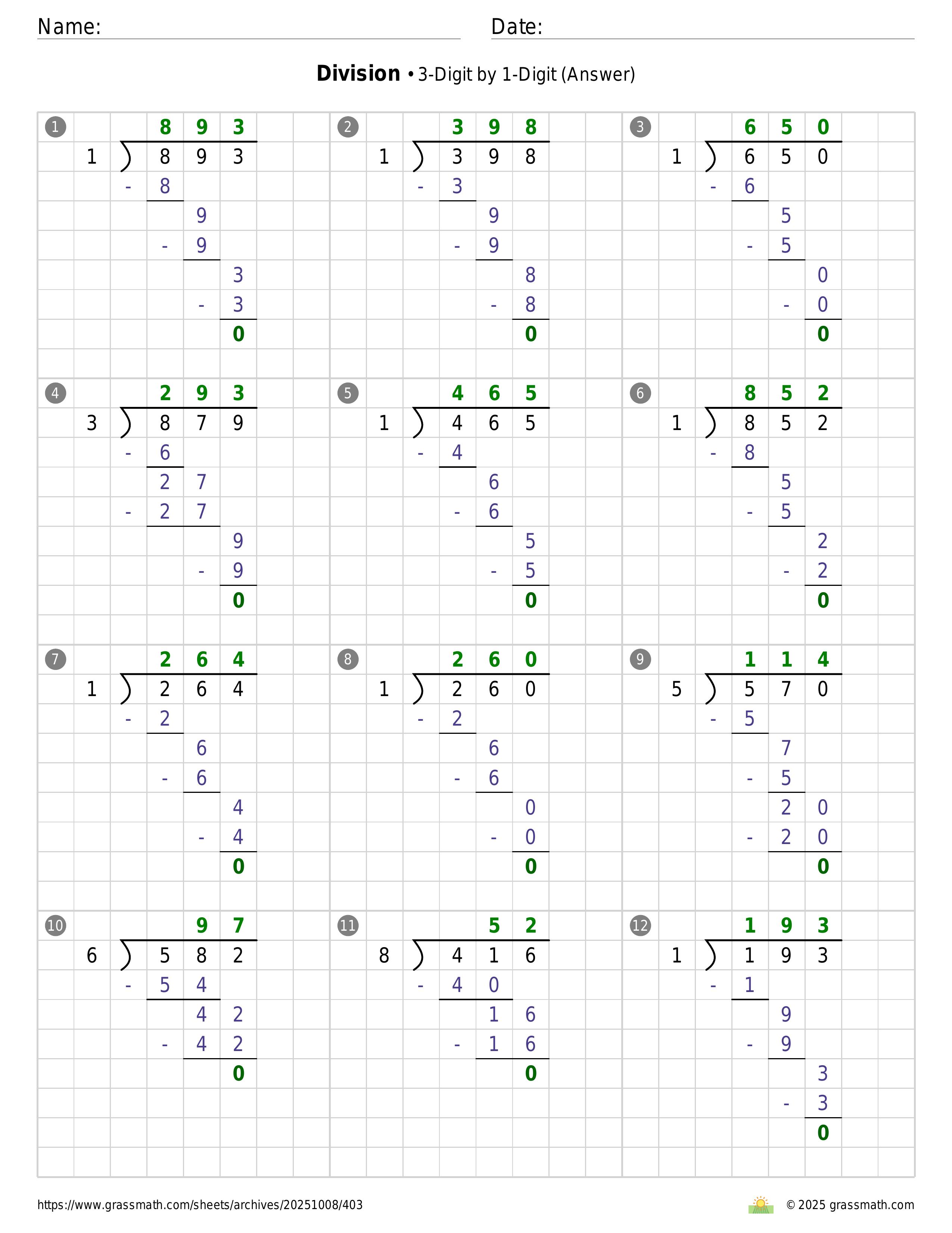 Division 3-Digit by 1-Digit