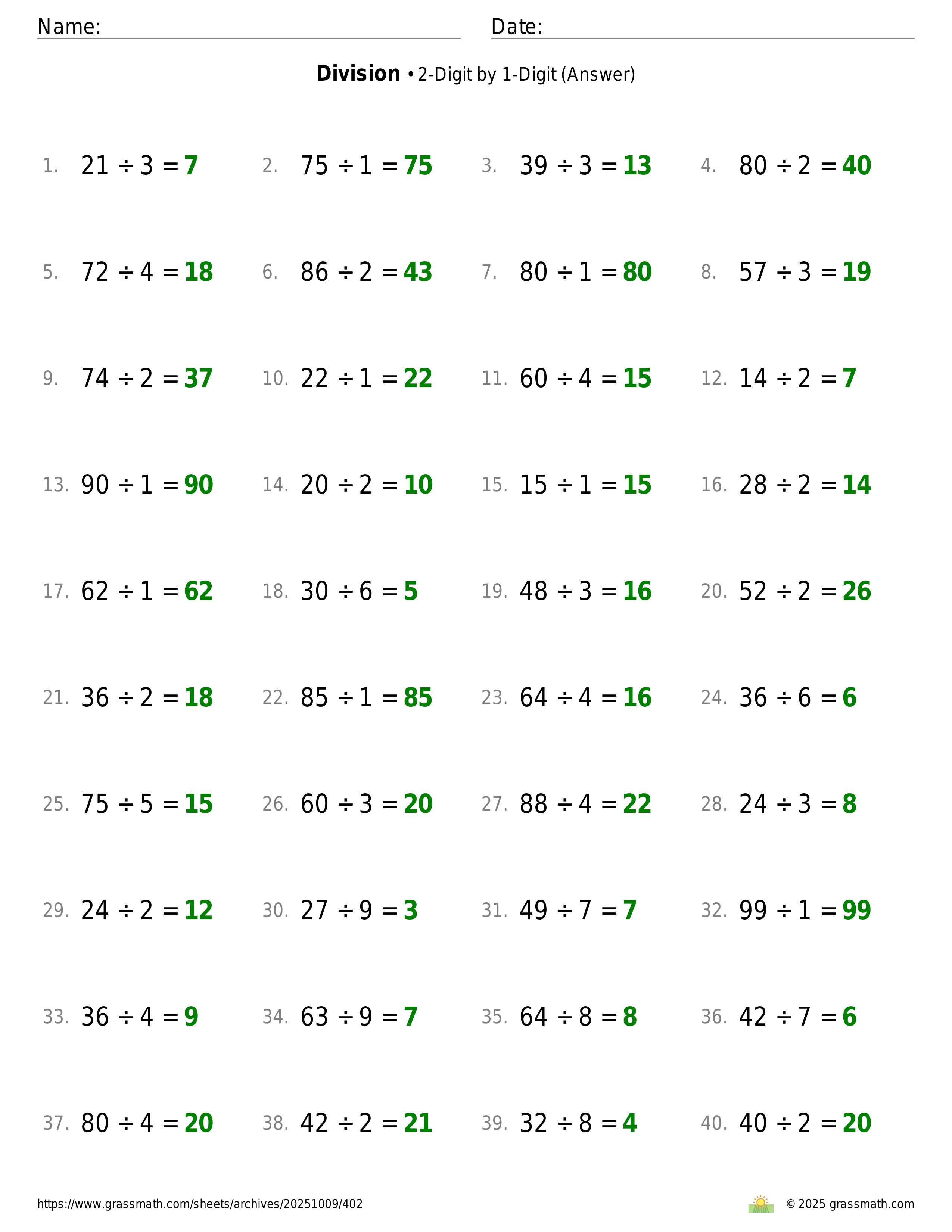 Division 2-Digit by 1-Digit