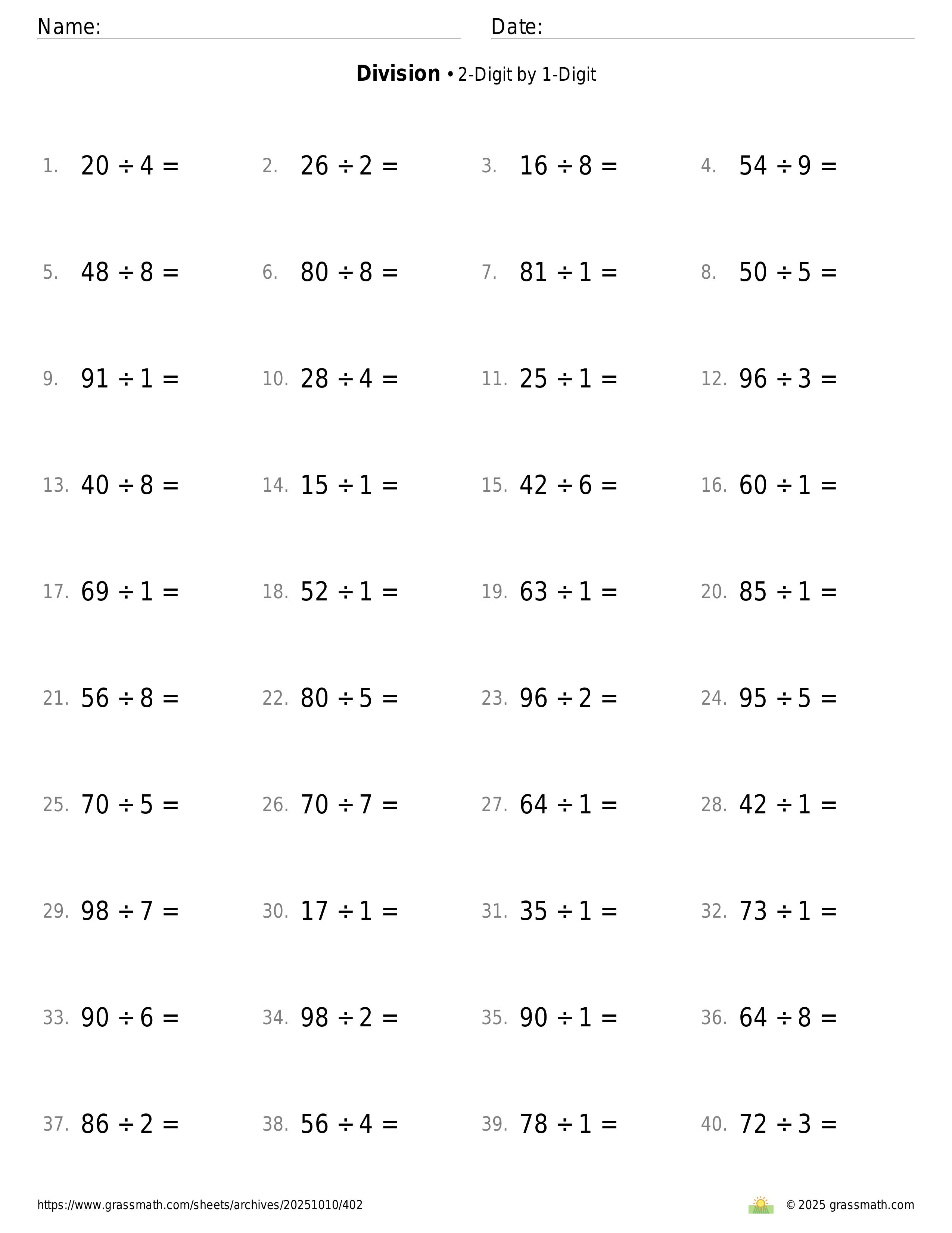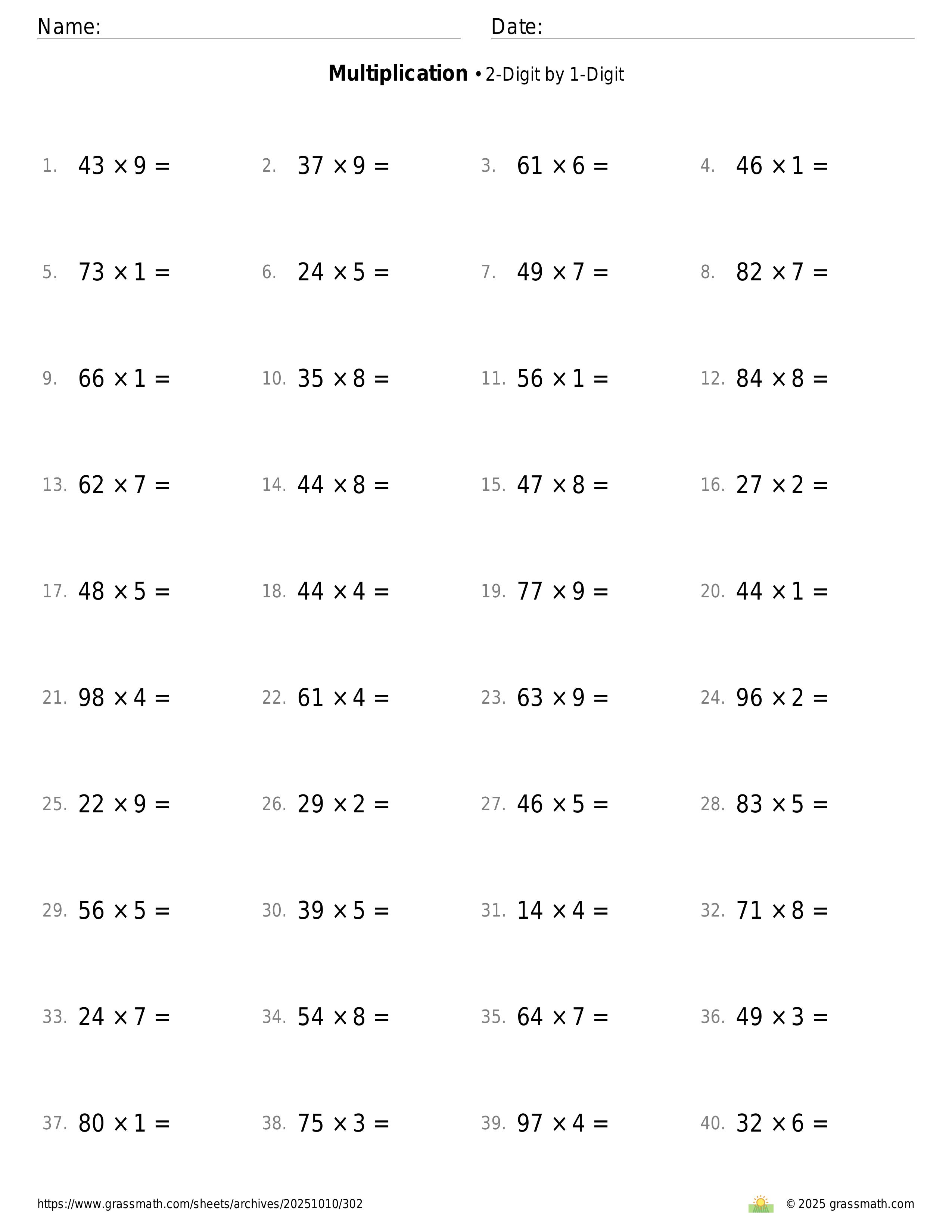 2-Digit by 1-Digit
