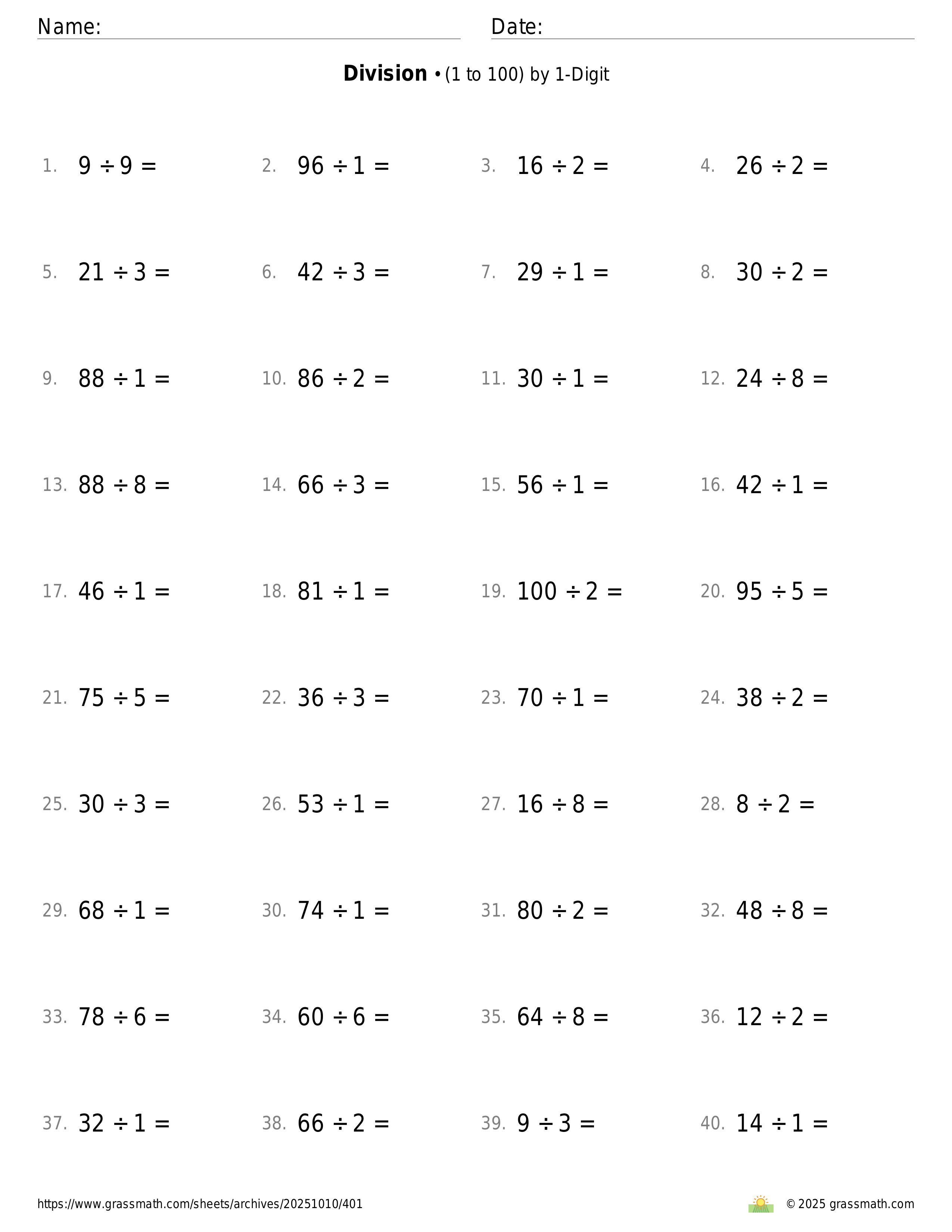 3-Digit by 1-Digit