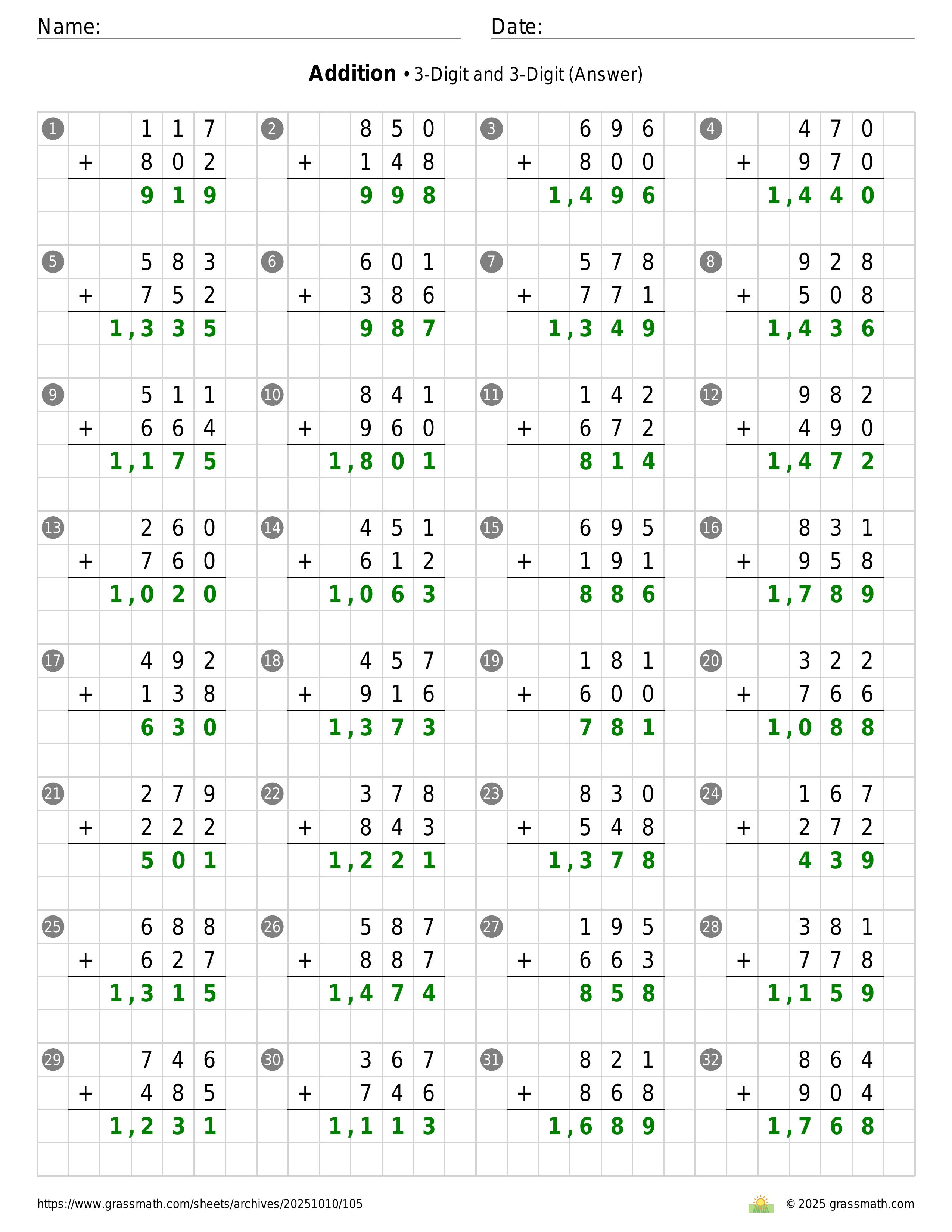 Addition 3-Digit and 3-Digit