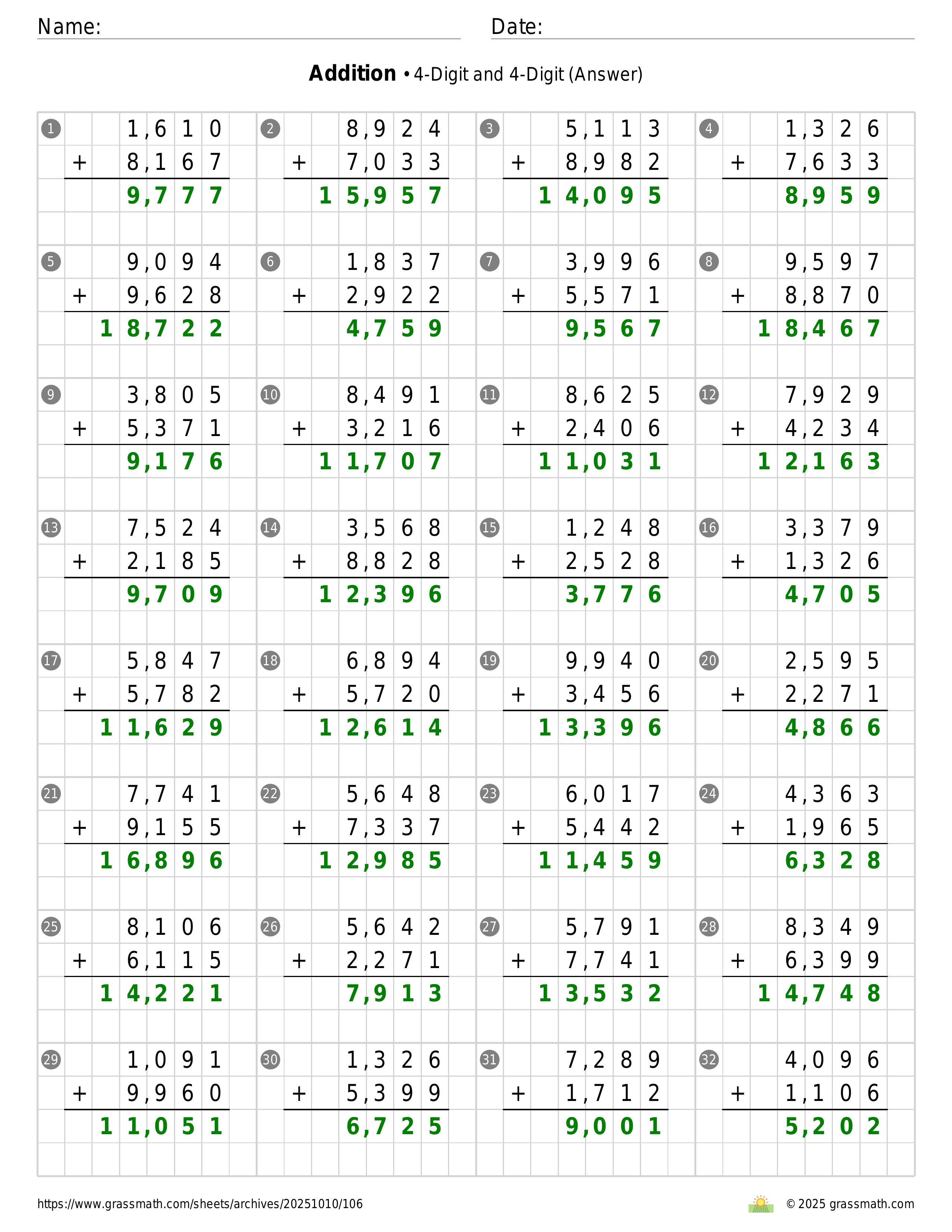 Addition 4-Digit and 4-Digit