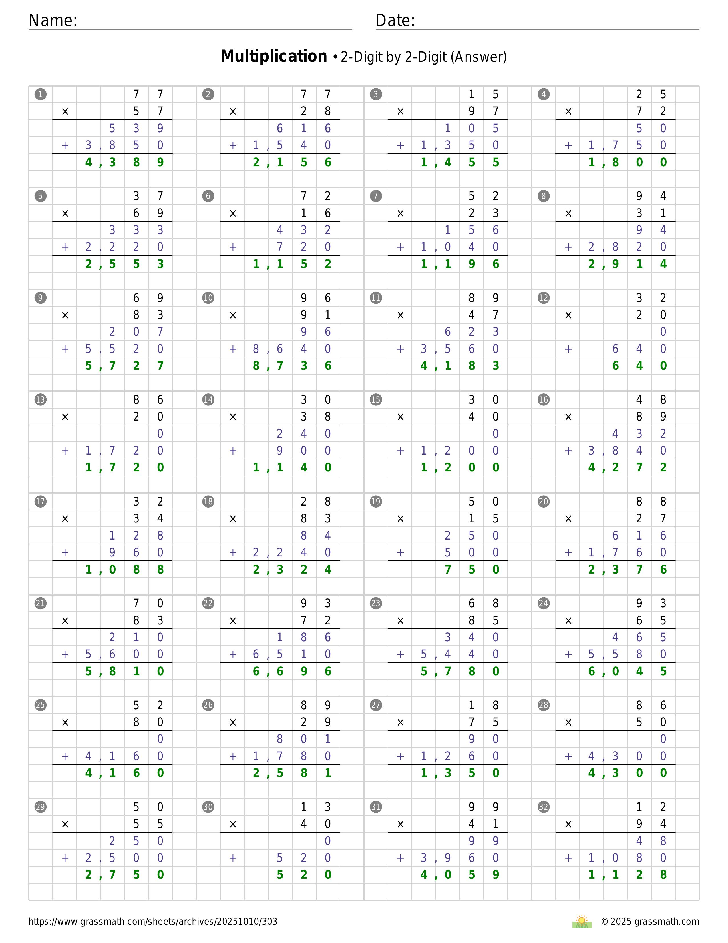 Multiplication 2-Digit by 2-Digit