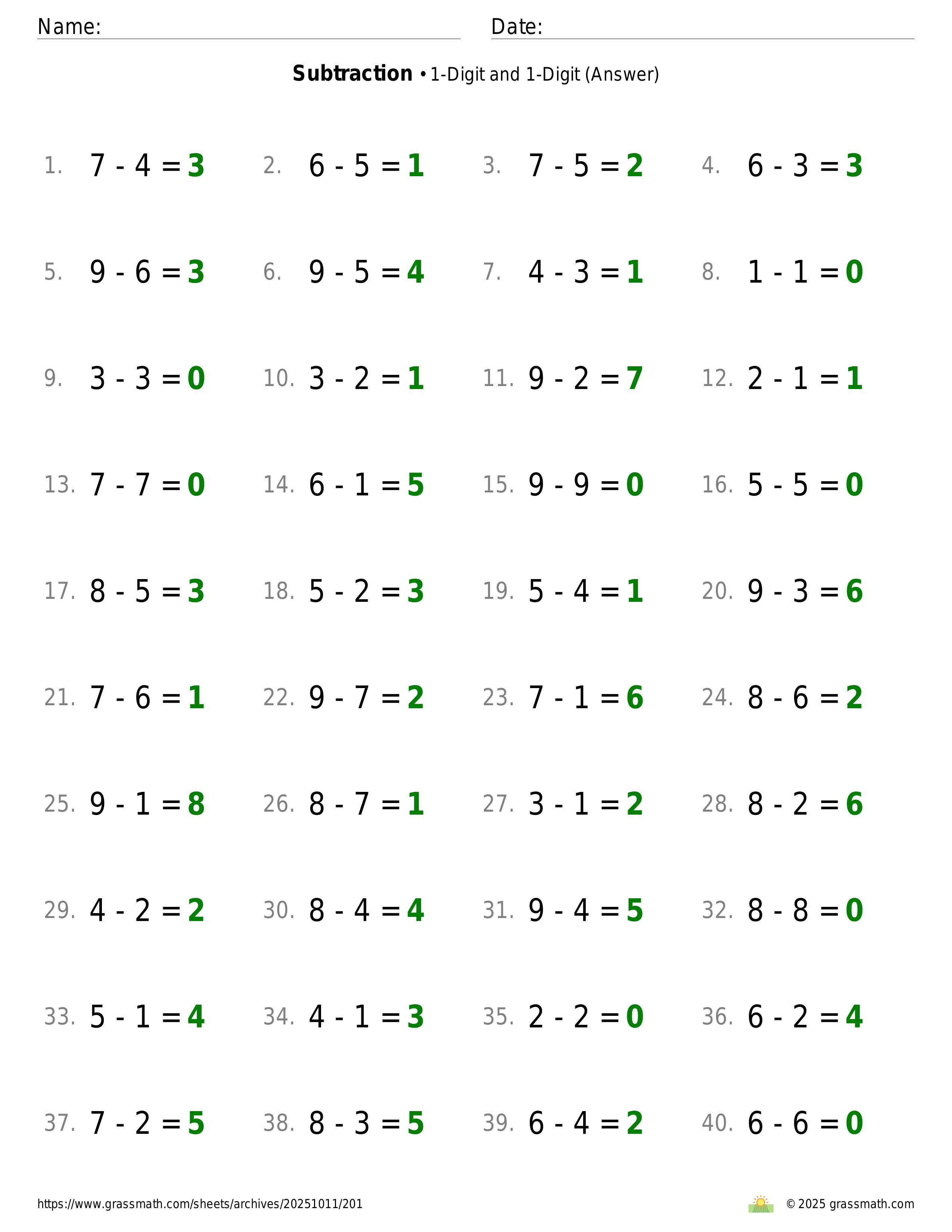 Subtraction 1-Digit and 1-Digit