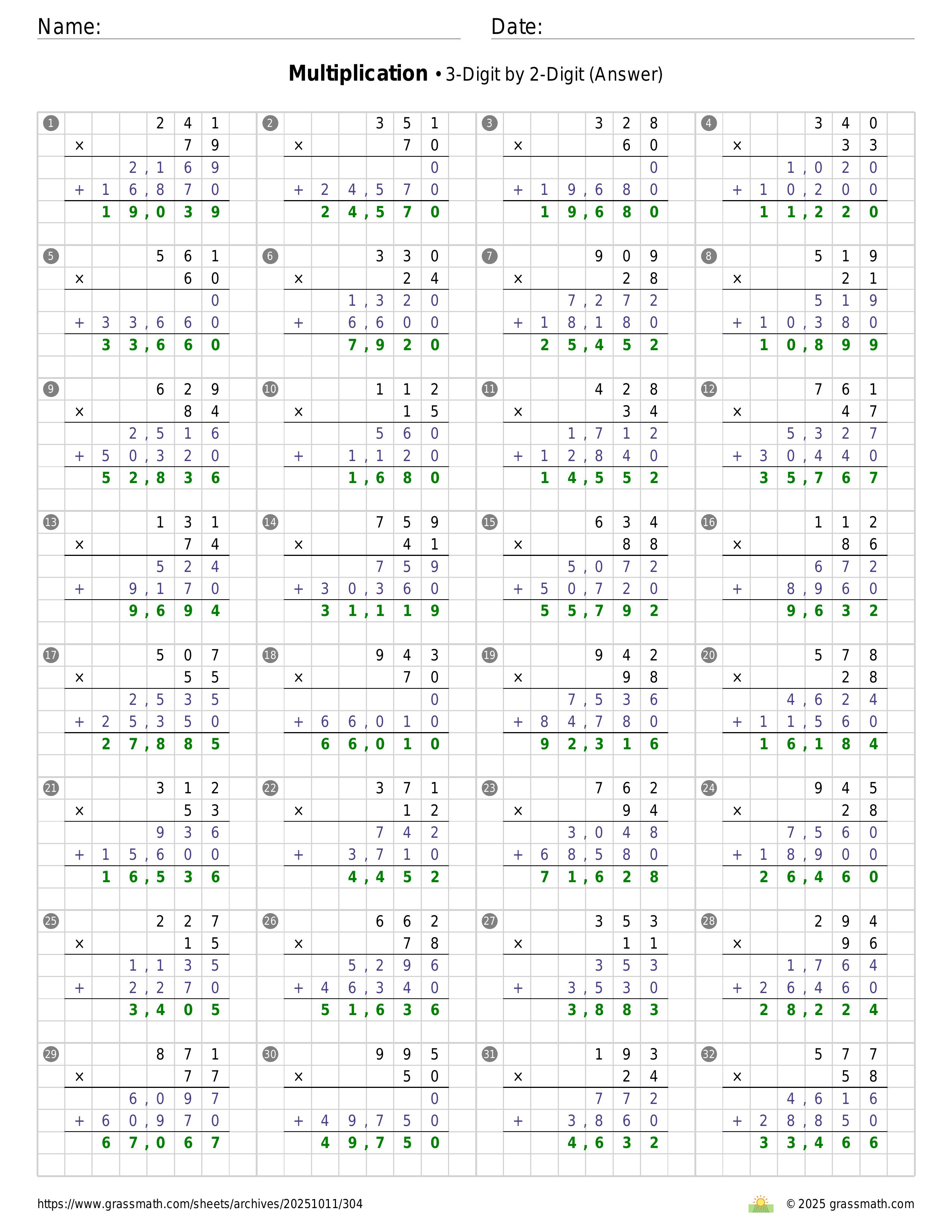 Multiplication 3-Digit by 2-Digit