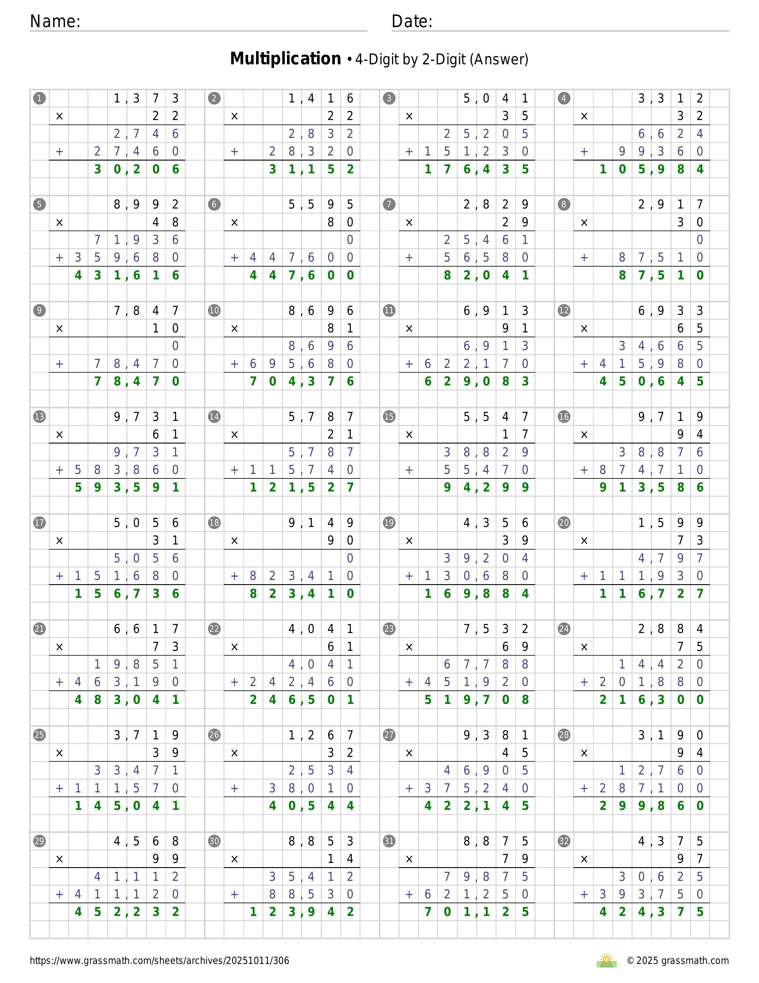 Multiplication 4-Digit by 2-Digit
