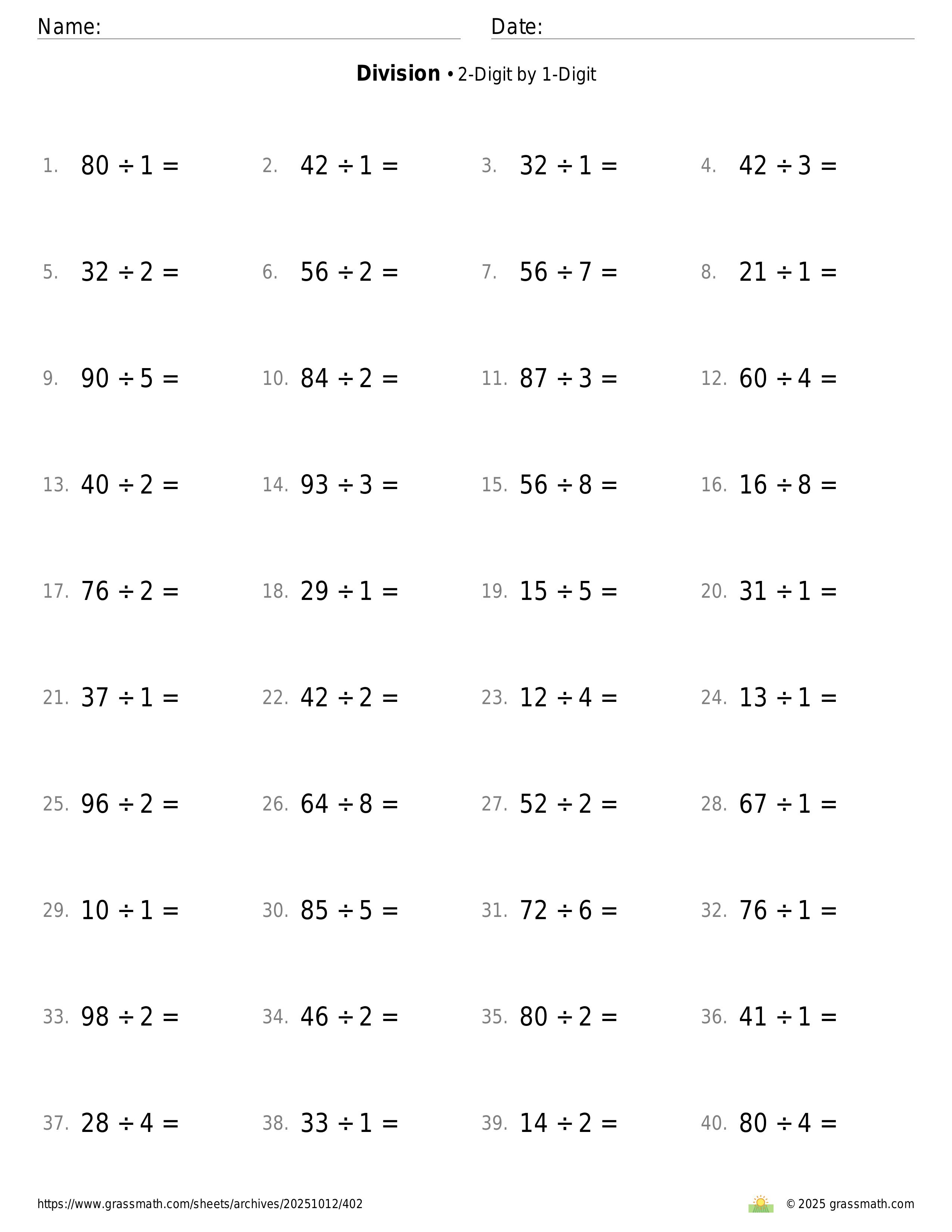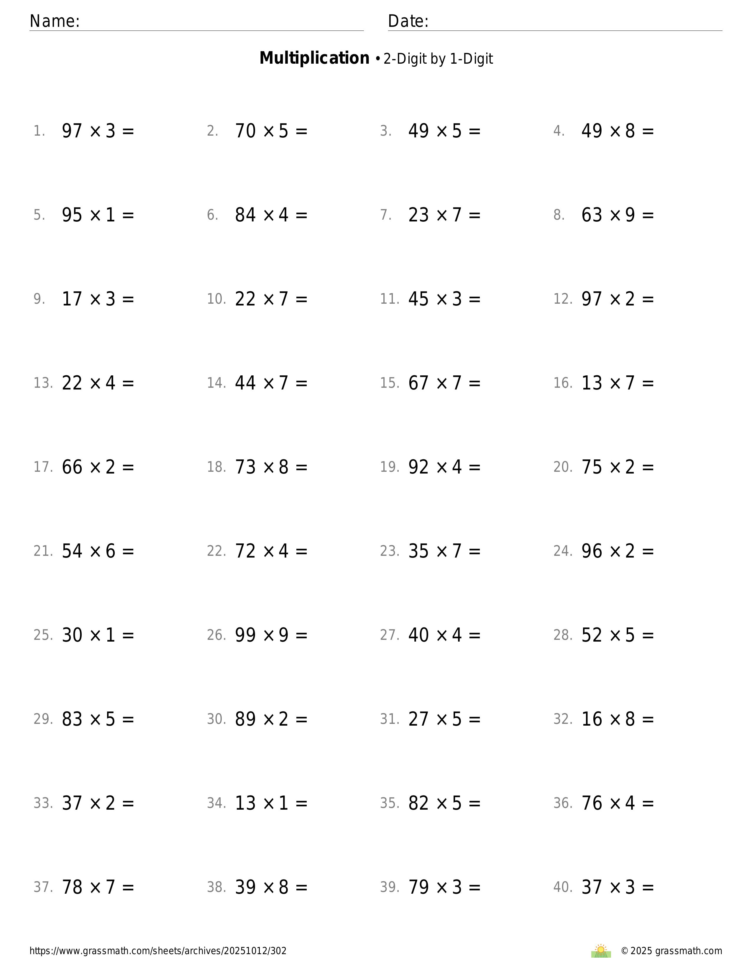 2-Digit by 1-Digit