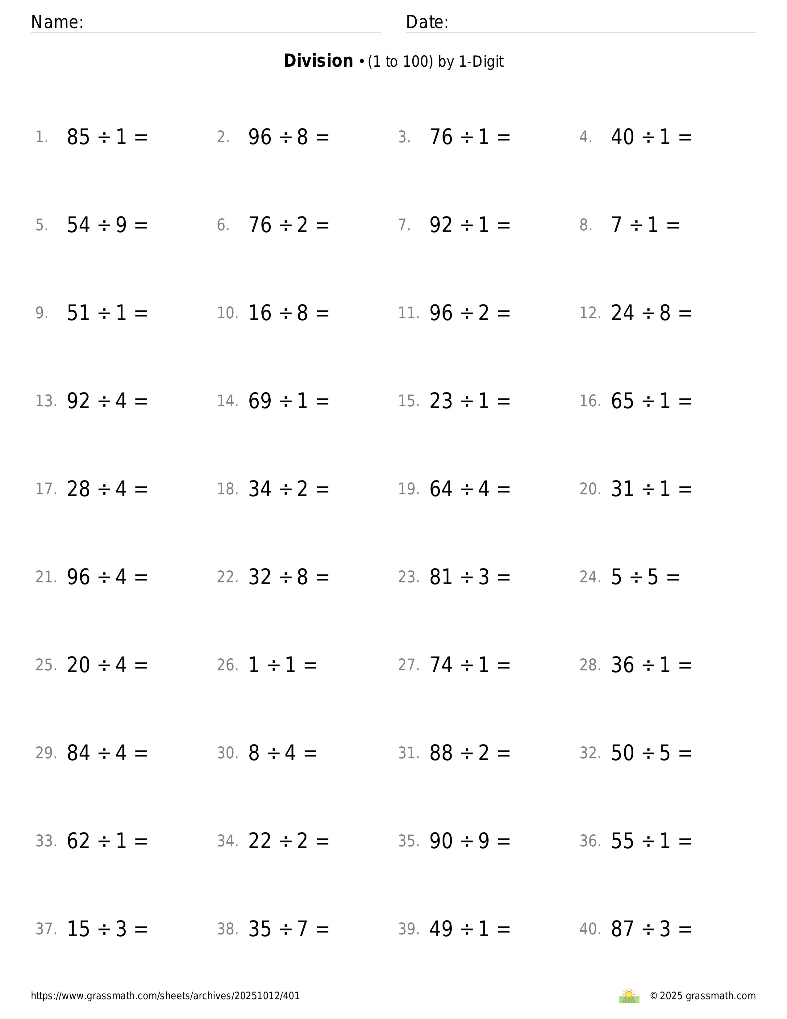 3-Digit by 1-Digit