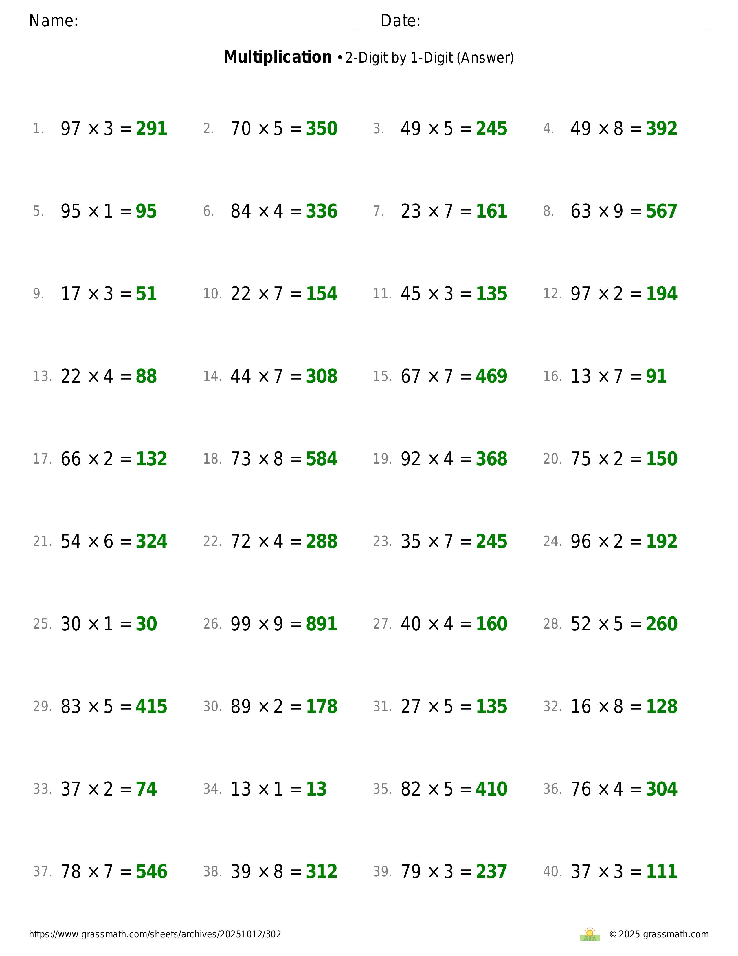 Multiplication 2-Digit by 1-Digit