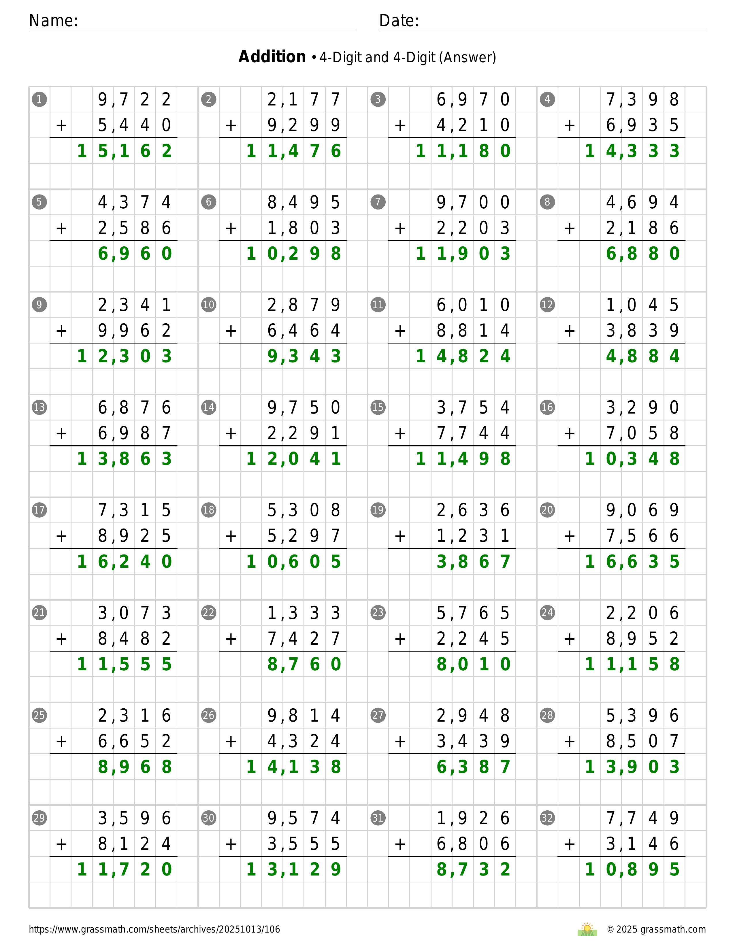 Addition 4-Digit and 4-Digit