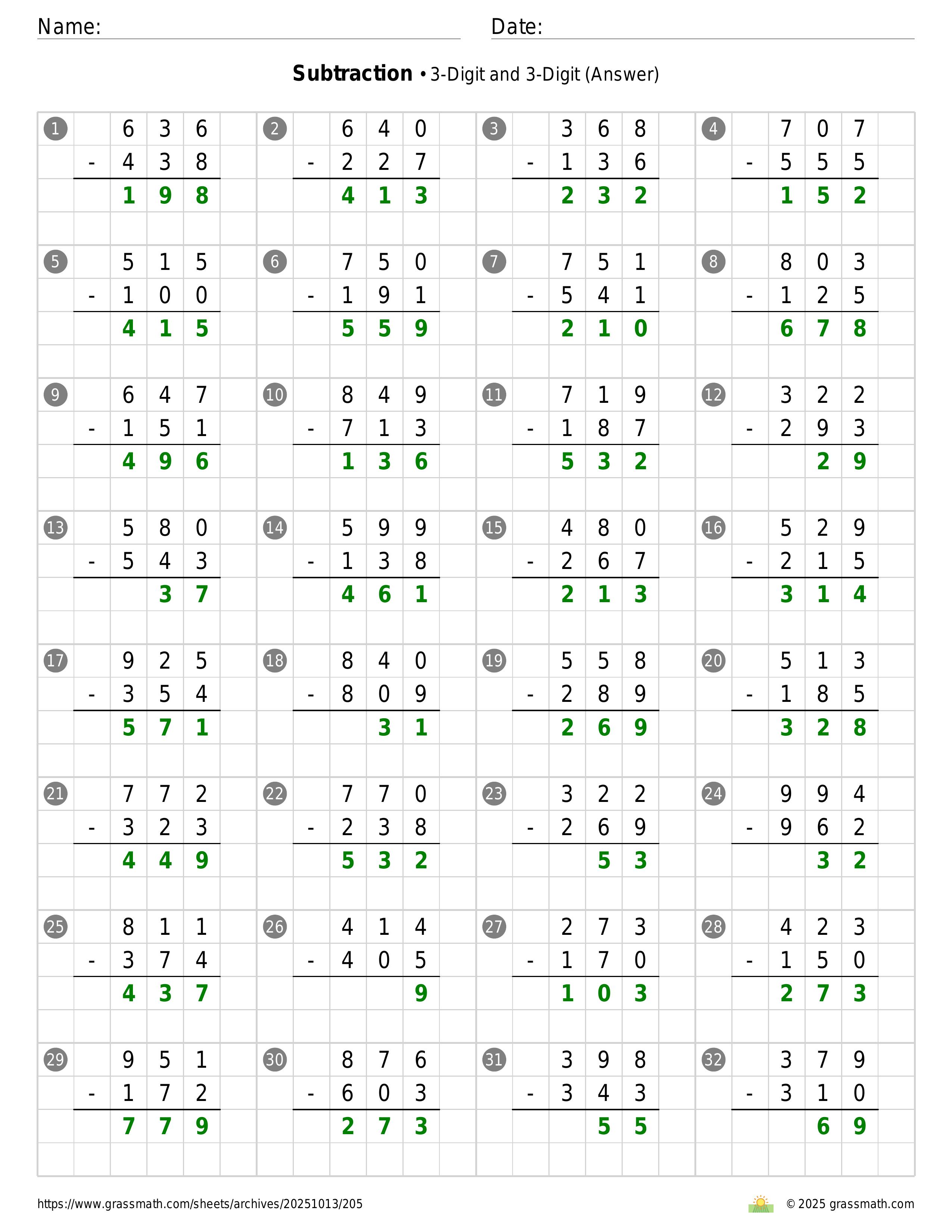 Subtraction 3-Digit and 3-Digit