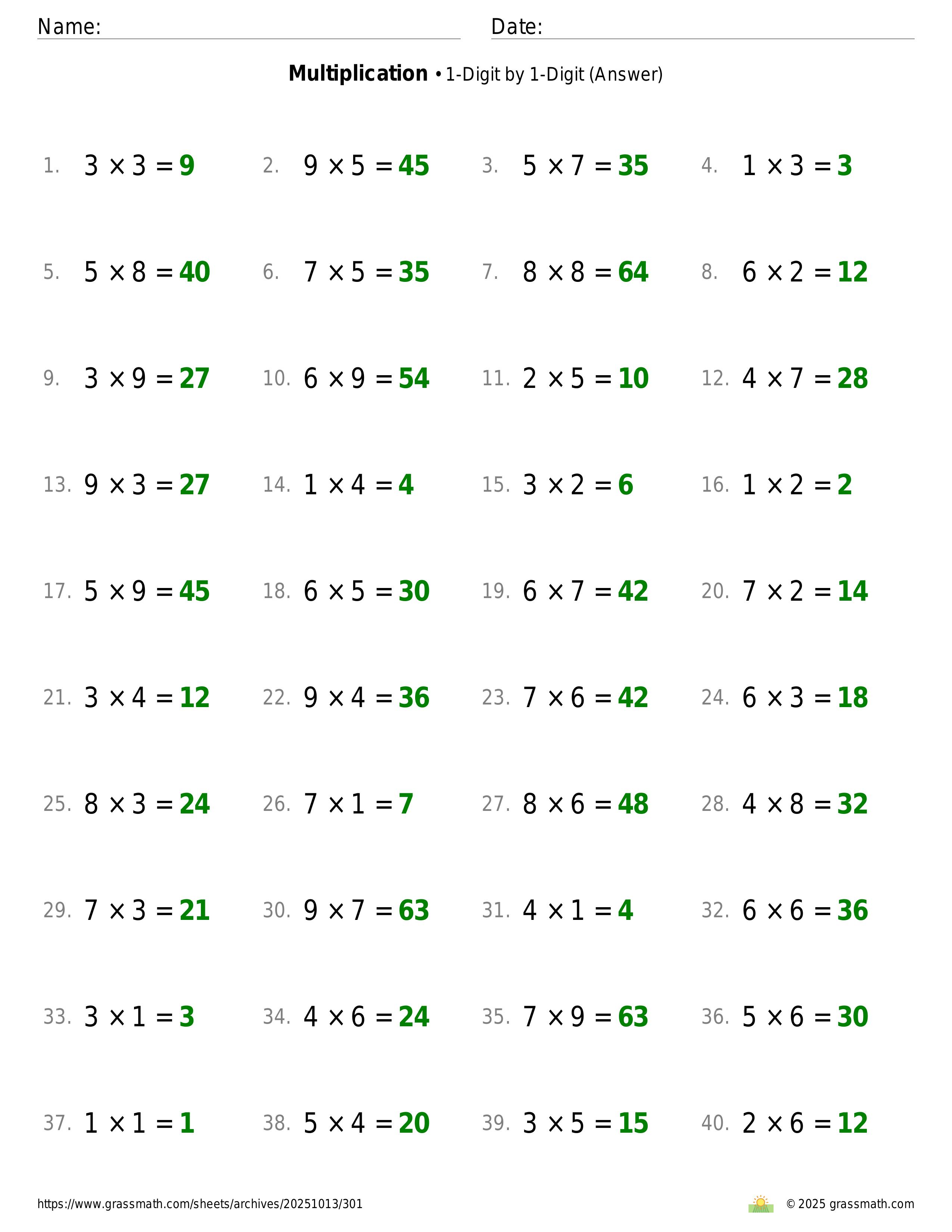Multiplication 1-Digit by 1-Digit