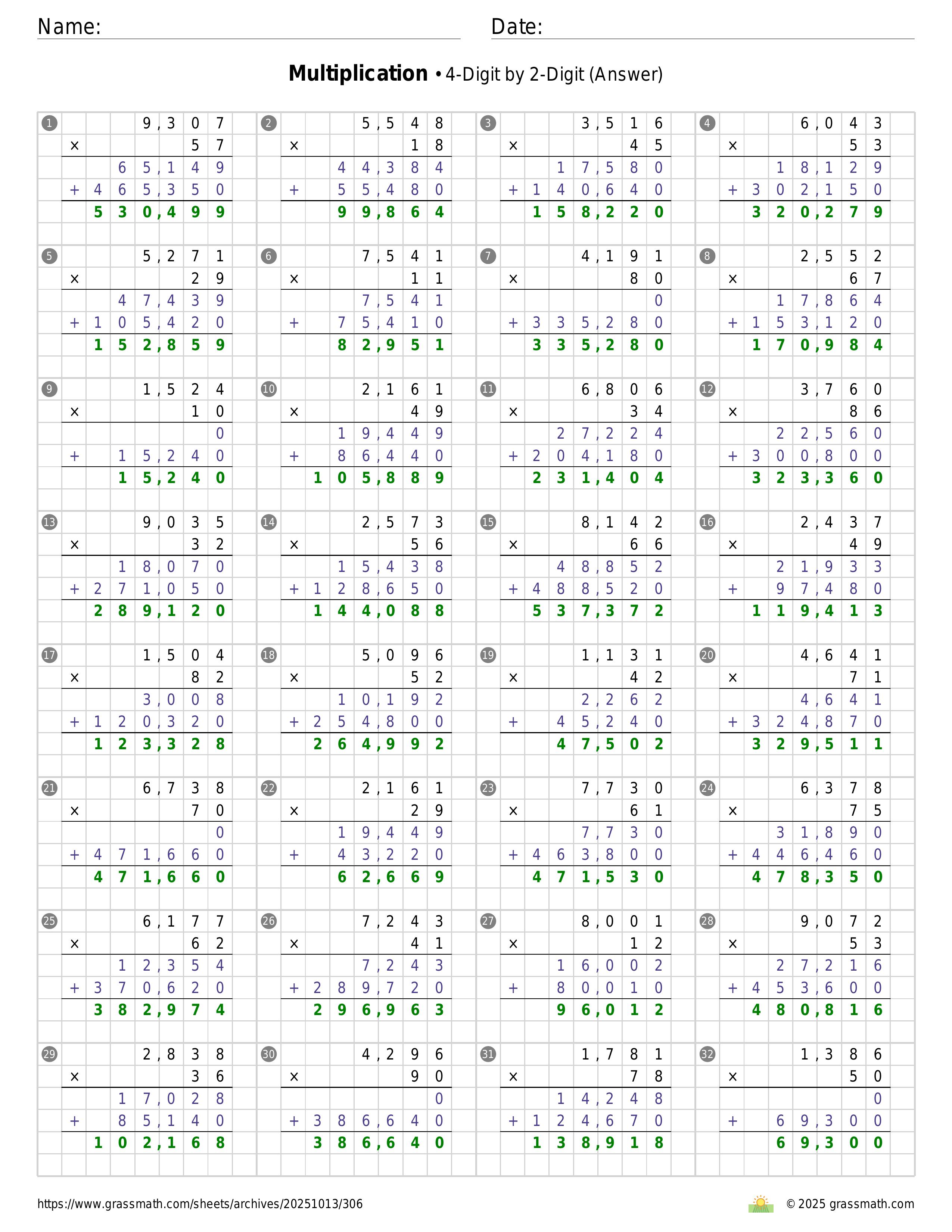 Multiplication 4-Digit by 2-Digit