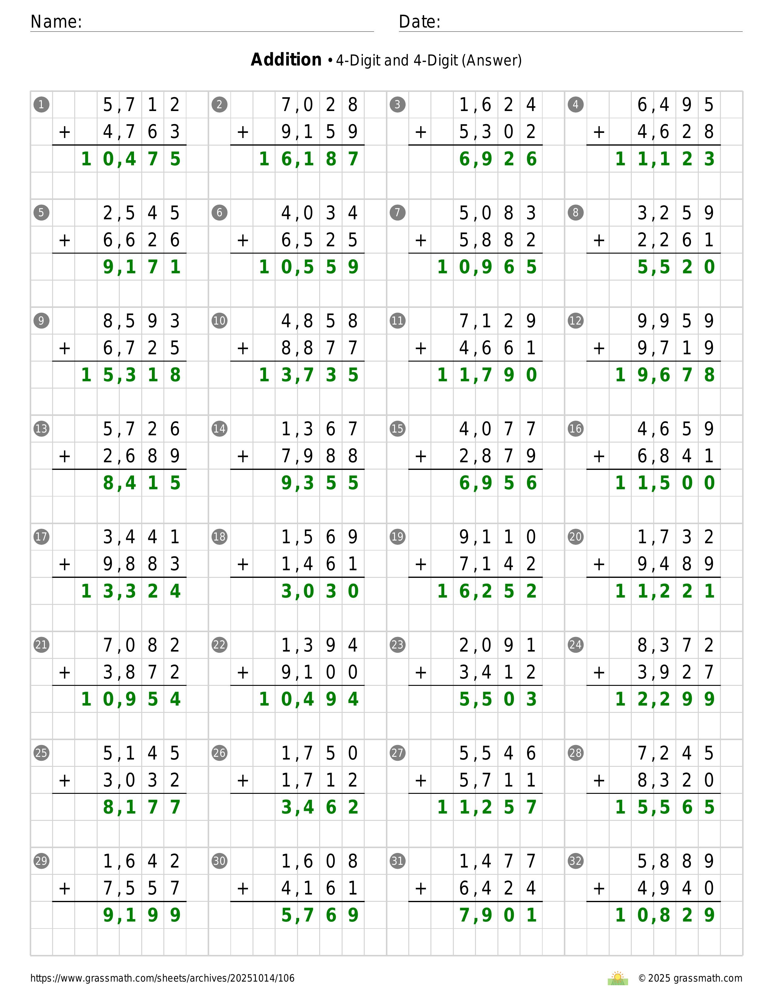 Addition 4-Digit and 4-Digit