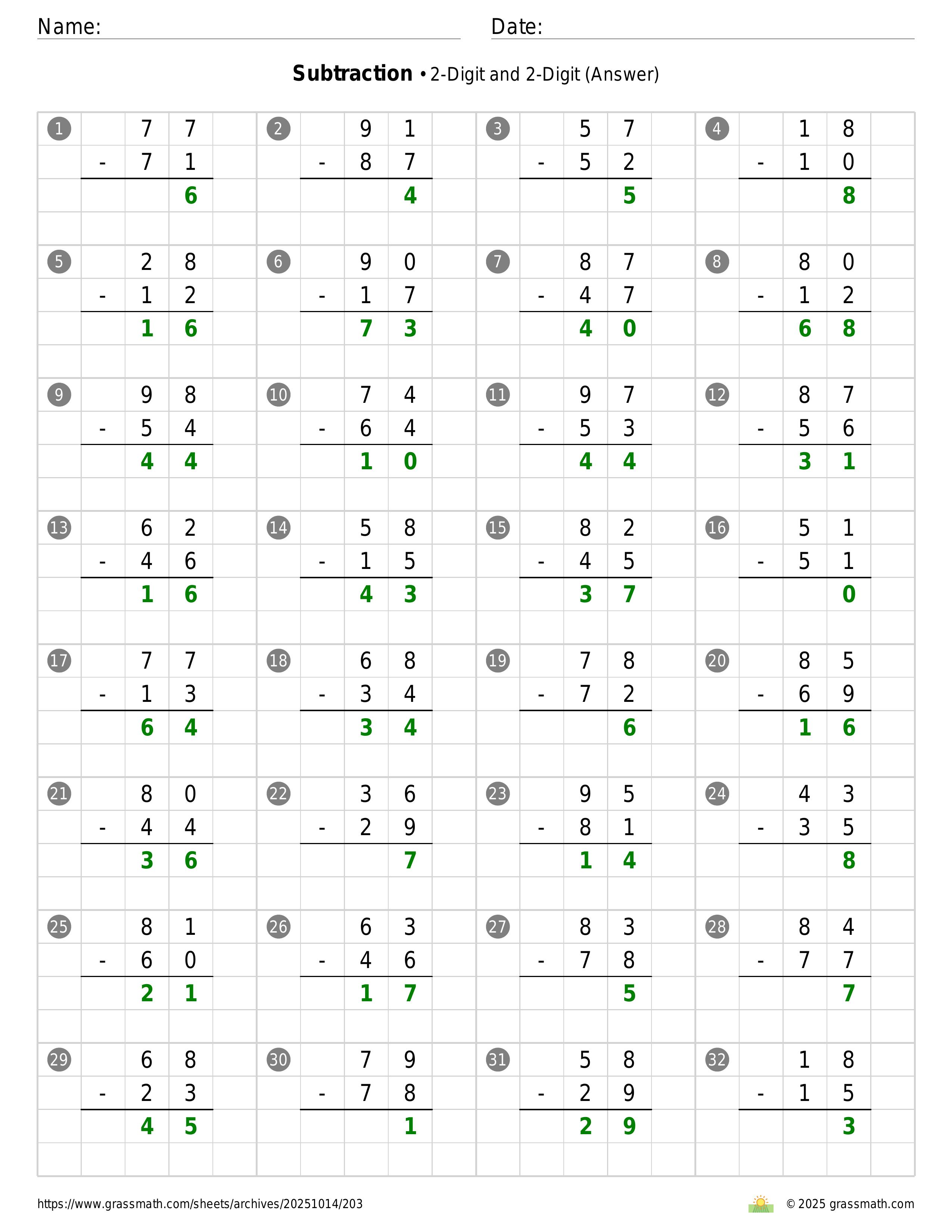 Subtraction 2-Digit and 2-Digit
