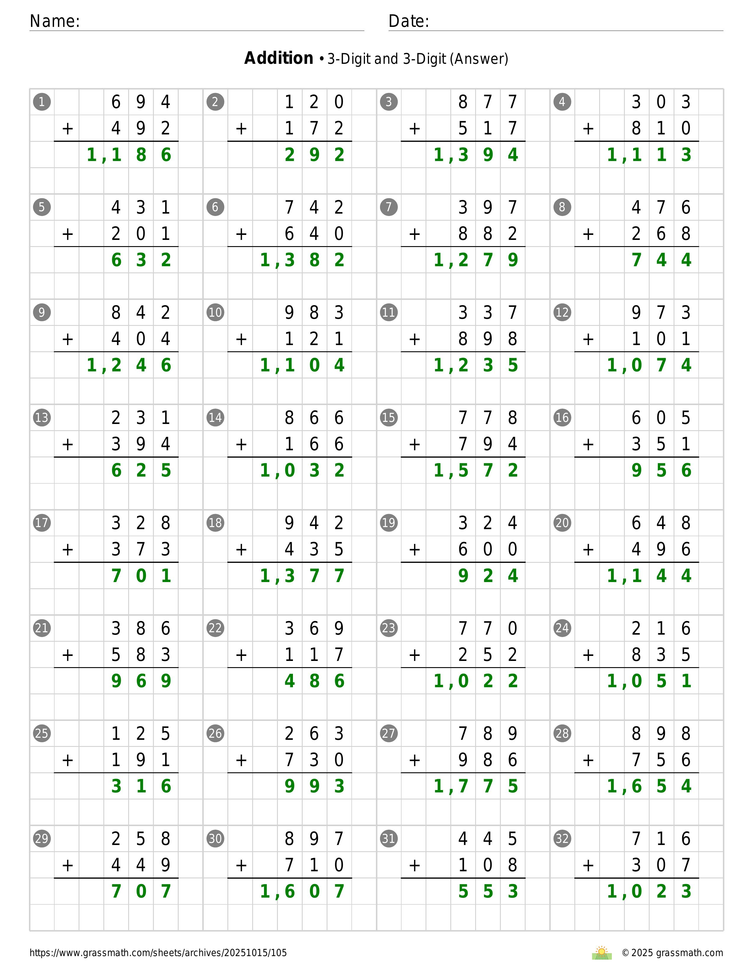 Addition 3-Digit and 3-Digit