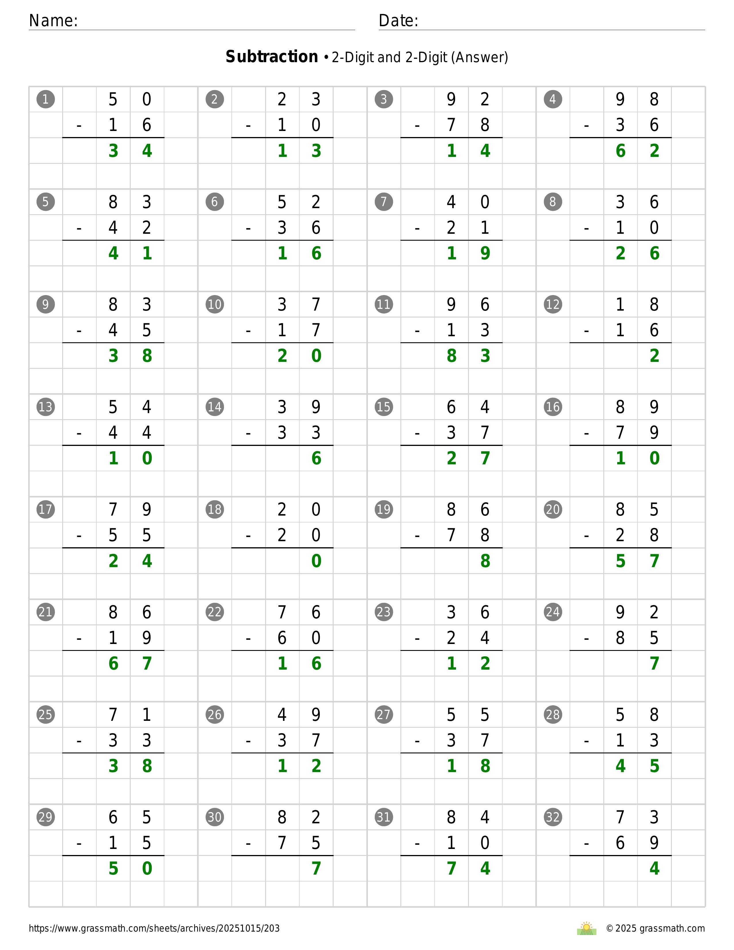 Subtraction 2-Digit and 2-Digit