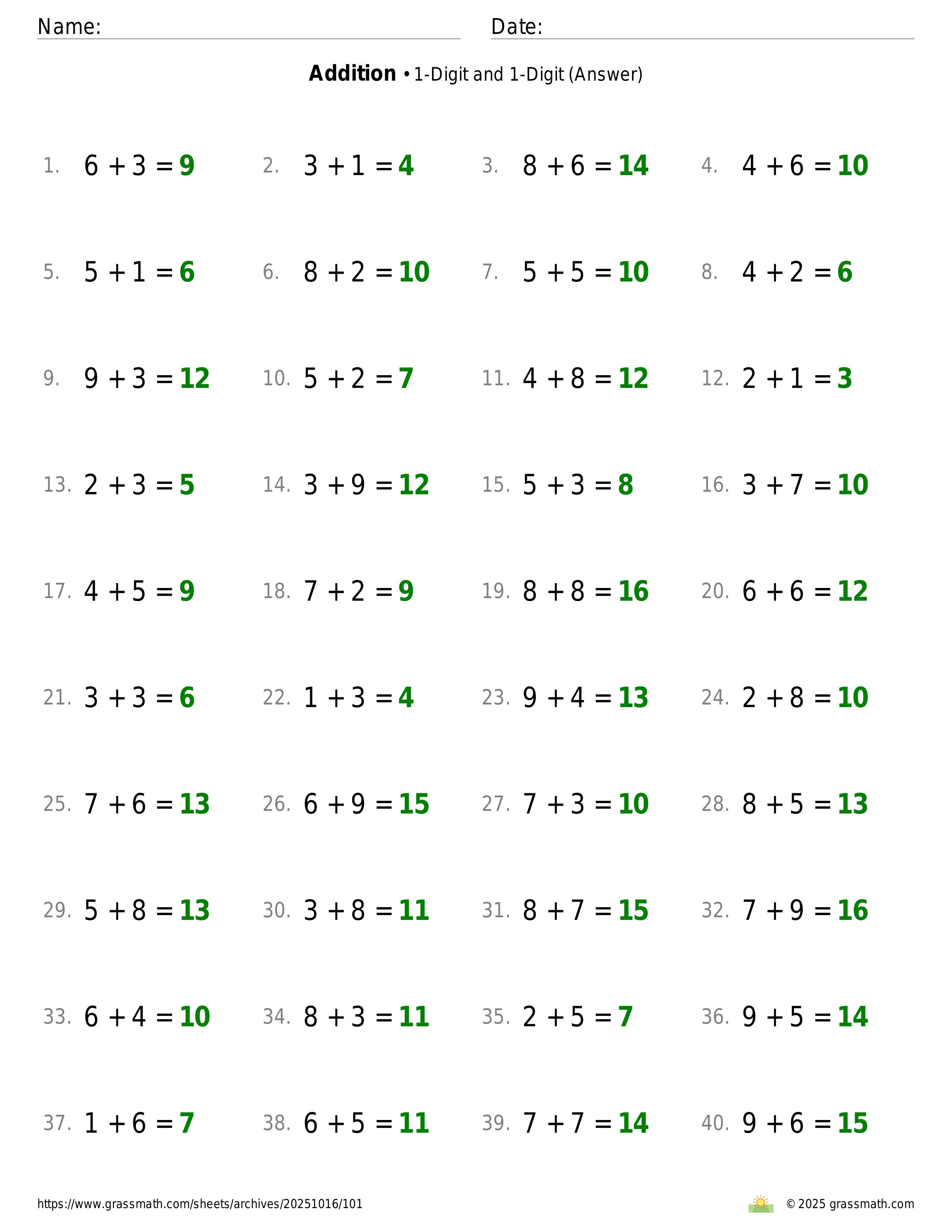Addition 1-Digit and 1-Digit