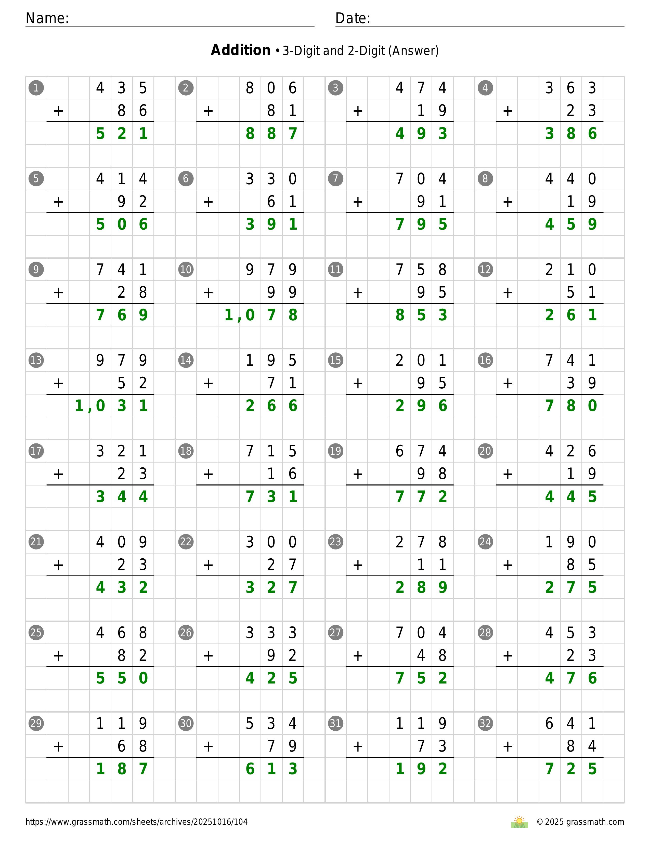 Addition 3-Digit and 2-Digit