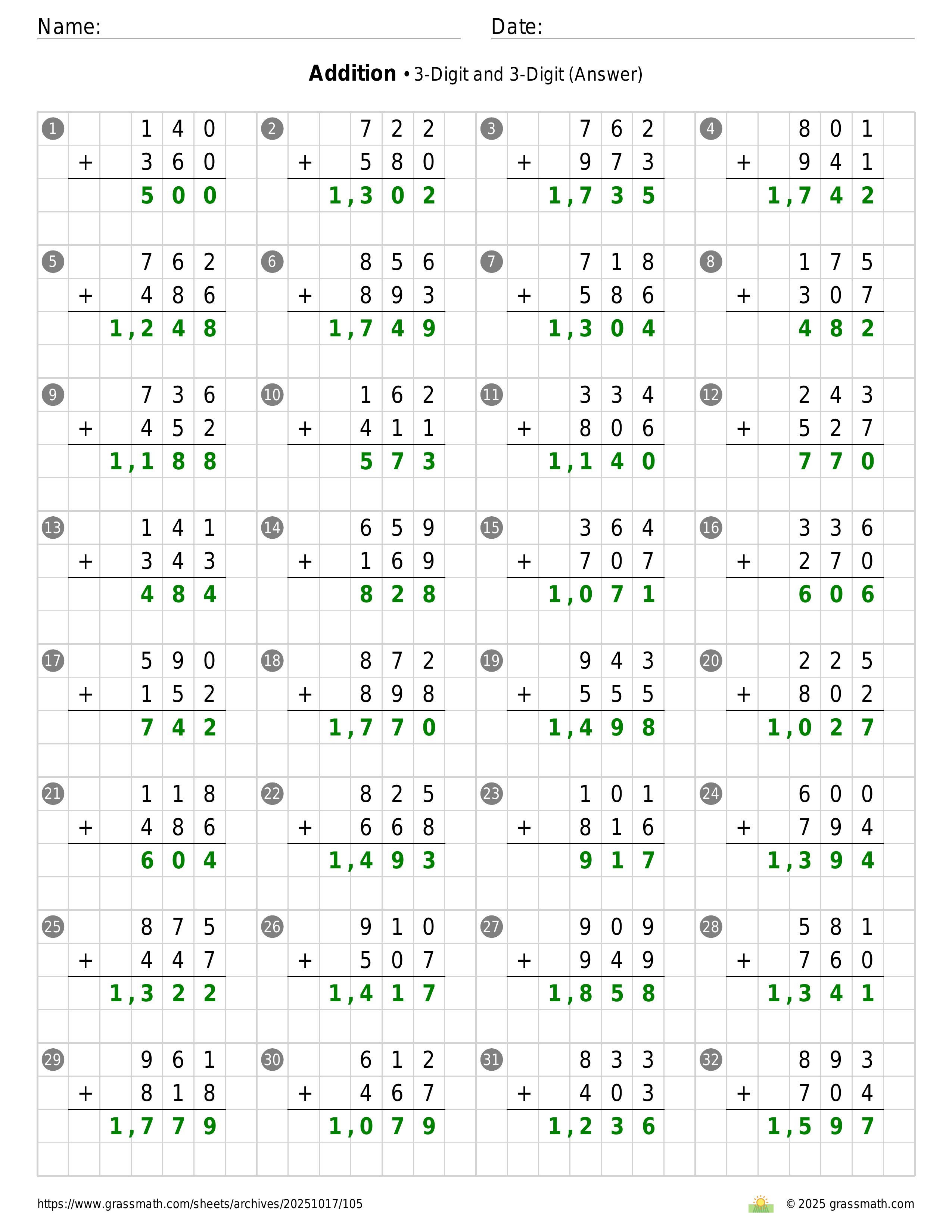 Addition 3-Digit and 3-Digit