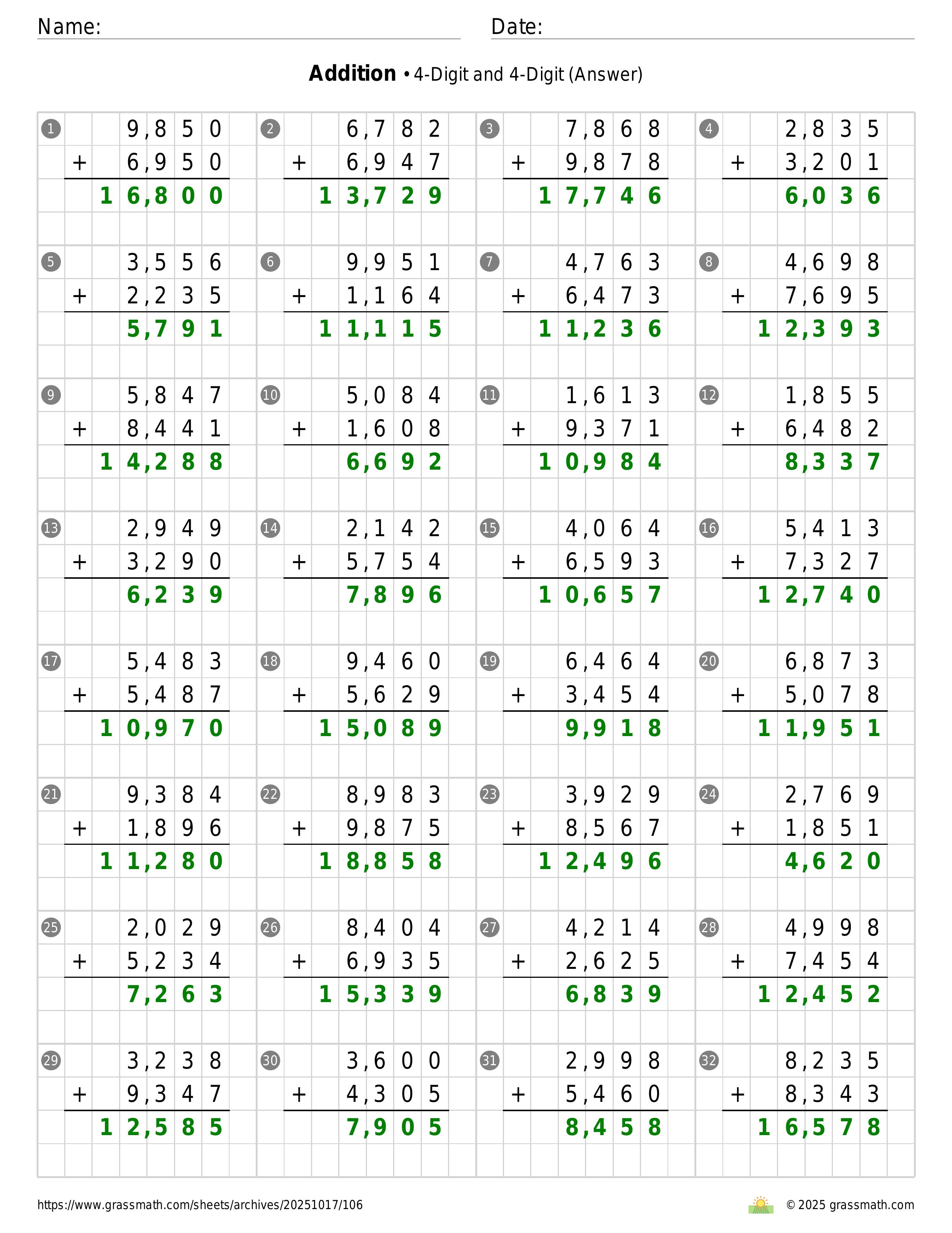 Addition 4-Digit and 4-Digit