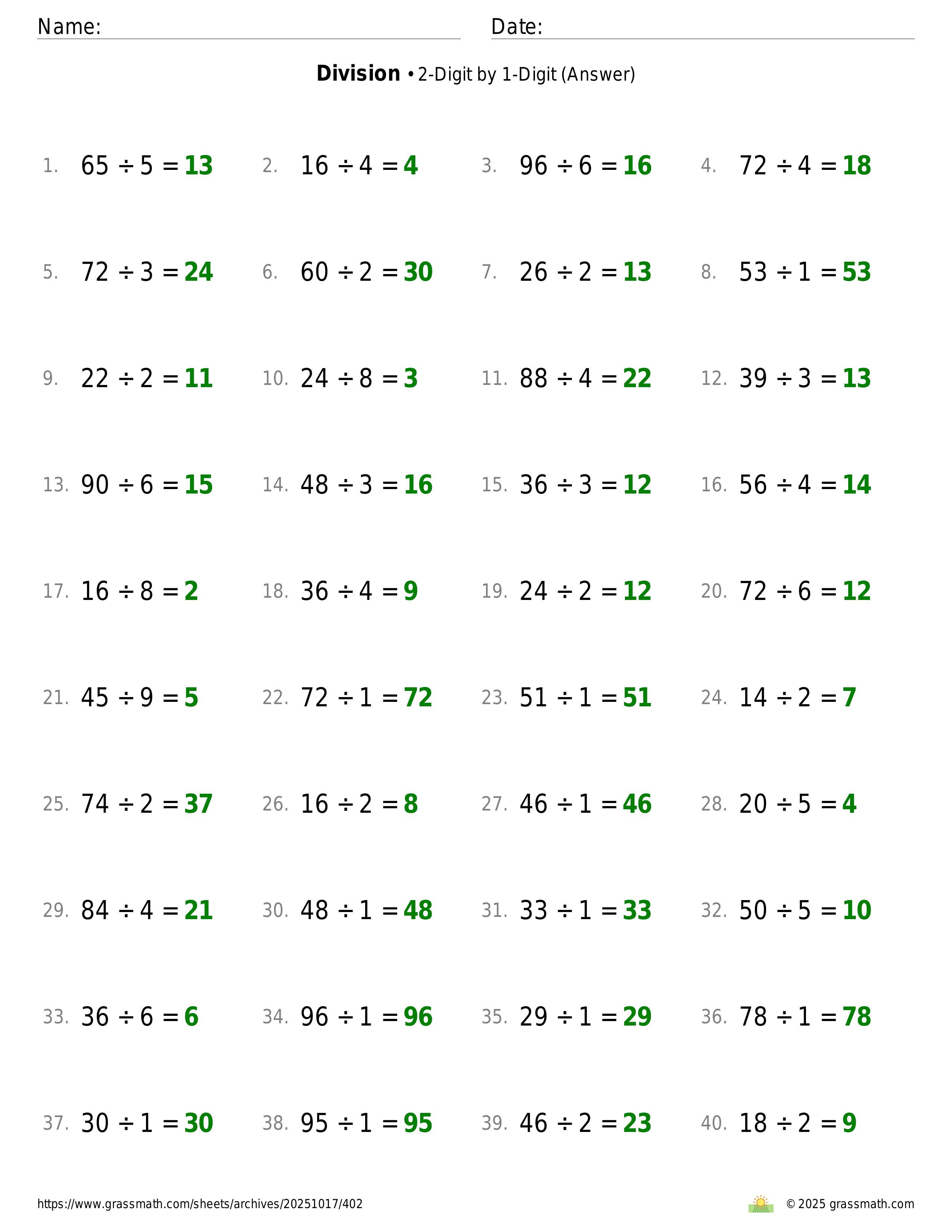 Division 2-Digit by 1-Digit