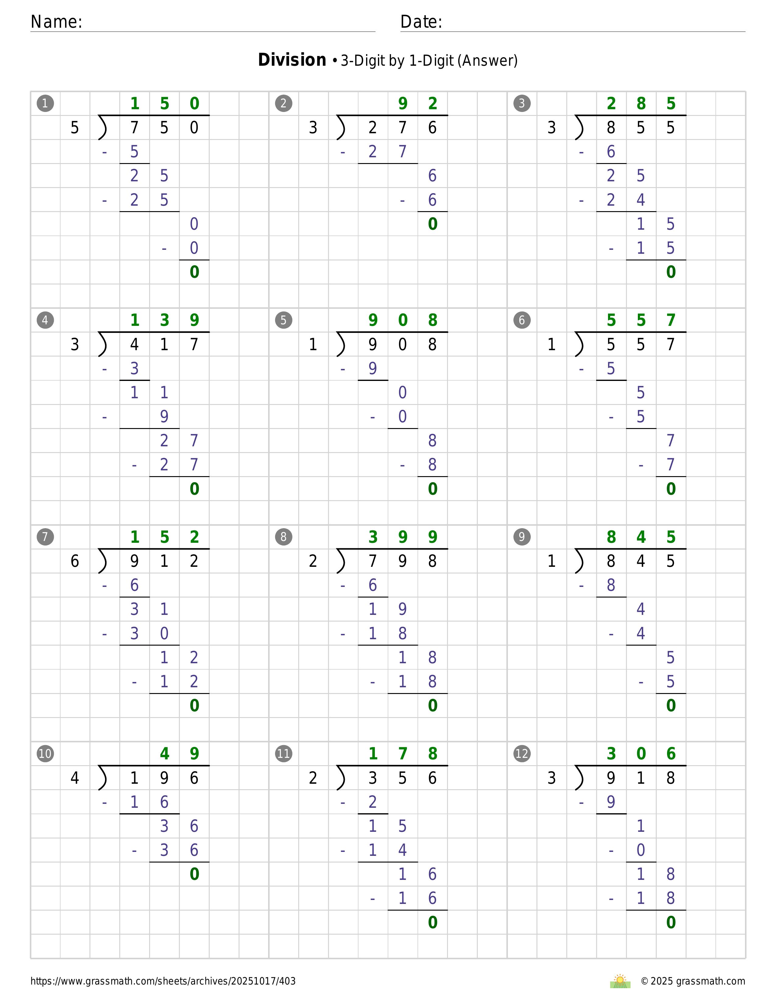 Division 3-Digit by 1-Digit