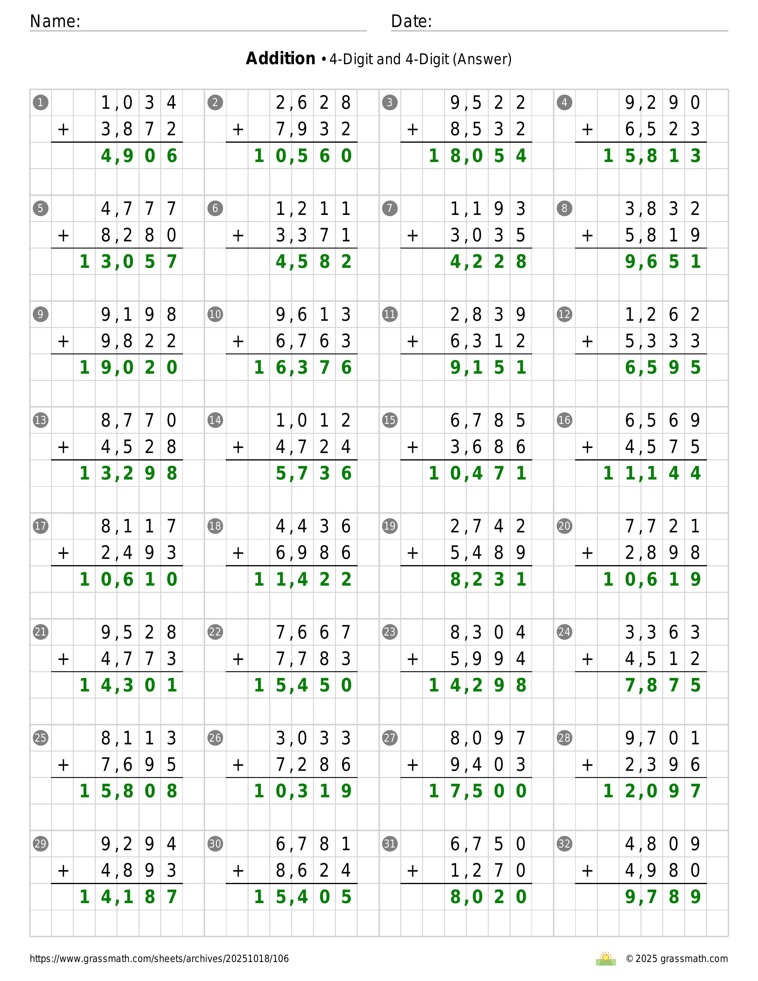 Addition 4-Digit and 4-Digit