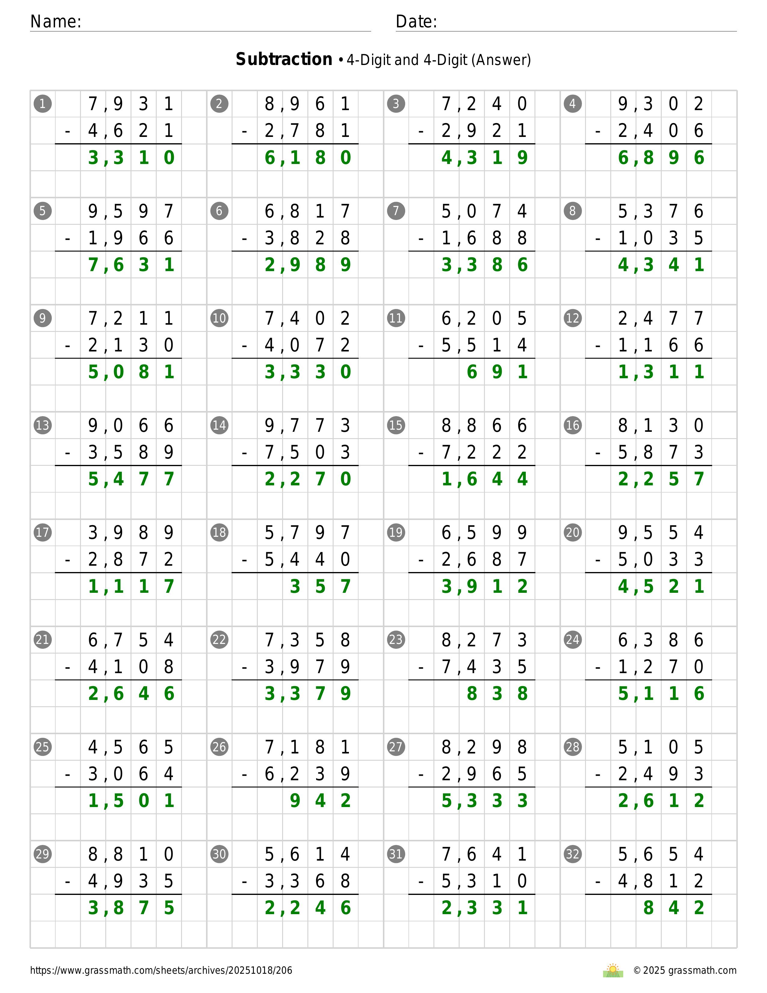 Subtraction 4-Digit and 4-Digit