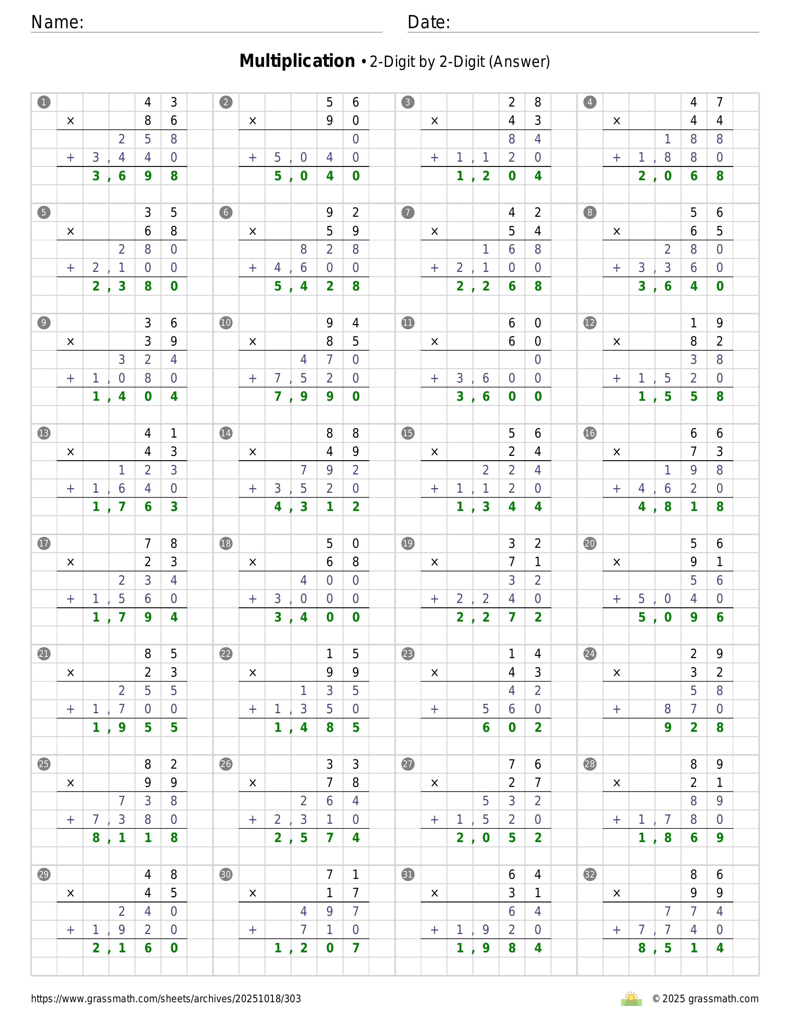 Multiplication 2-Digit by 2-Digit