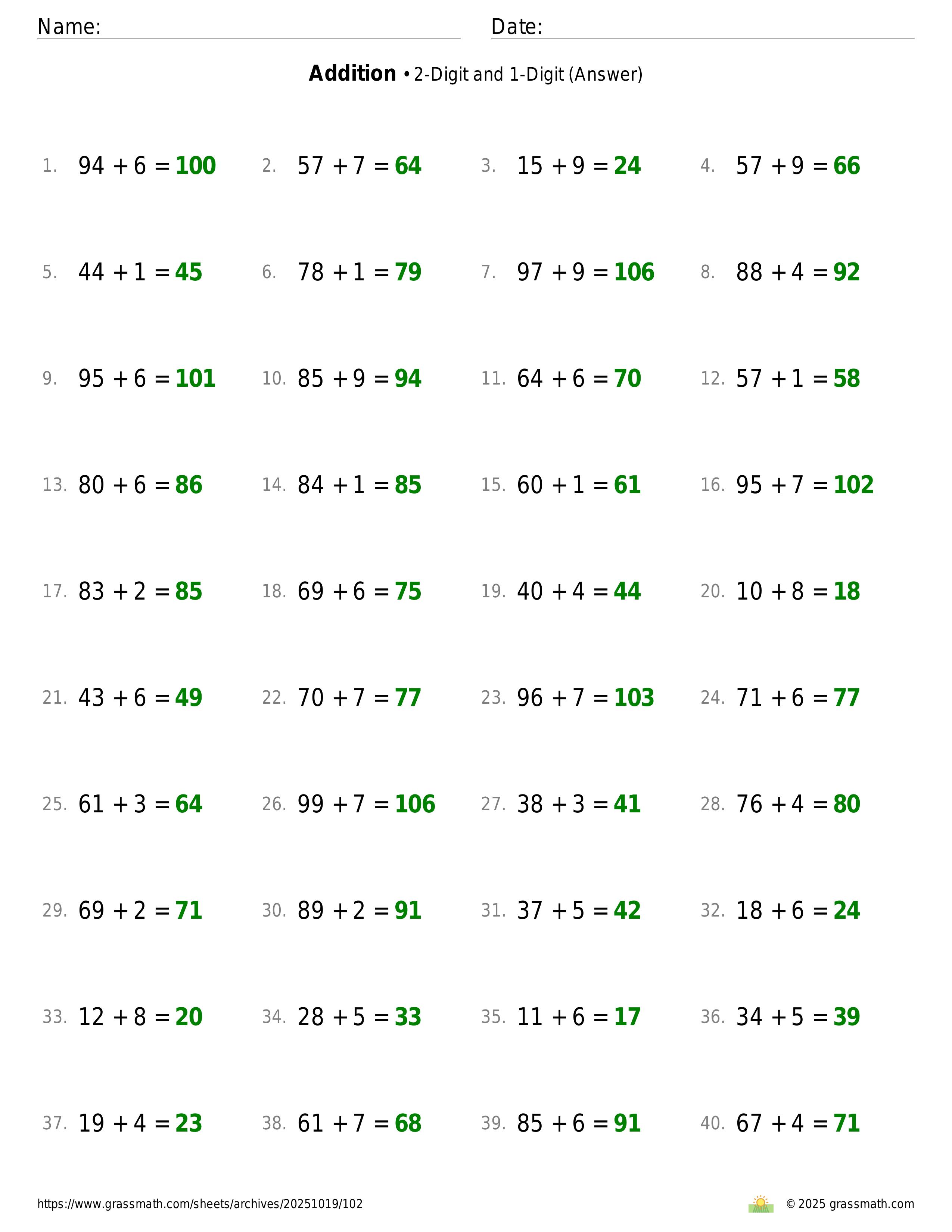 Addition 2-Digit and 1-Digit